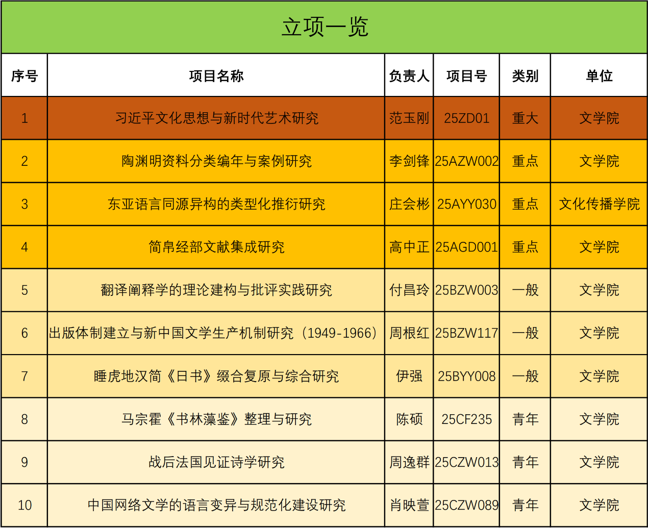 日前,全国哲学社会科学工作办公室网站公布了2025年国家社会科学基金年度项目立项结果。sunbet官方网站中文学科教师今年至此,已获批国家级课题10项,其中重大项目1项,重点项目3项,一般项目3项,青年项目3项,立项数量创历史新高!