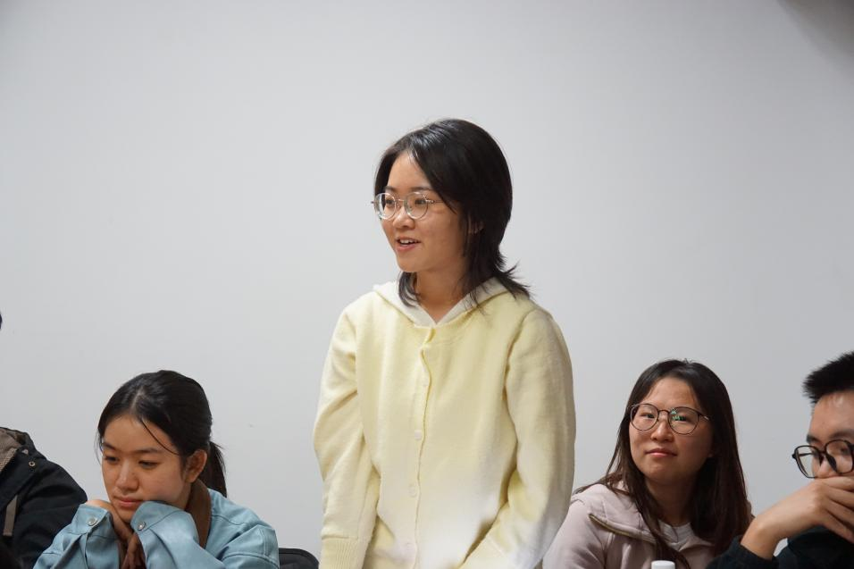 互动环节,高婕同学提问到,在繁多的《说文》版本里,古文字员工该如何选择。董老师回答:国家图书馆出版社影印的宋本《说文》是大徐本的最佳选择,小徐本则要参考祁刻本、钱曾抄本,若涉及到学术史研究则要关注汲古阁本。杜芮萱同学提问:“我们之前讲过一个字,球,玉声也。有的版本是玉磬也。有的版本是玉也。这三个解释都能讲通,如何判定对错呢?”董老师作出解答:需要经过严密考证,各探依据,不可轻易判定孰优孰劣。