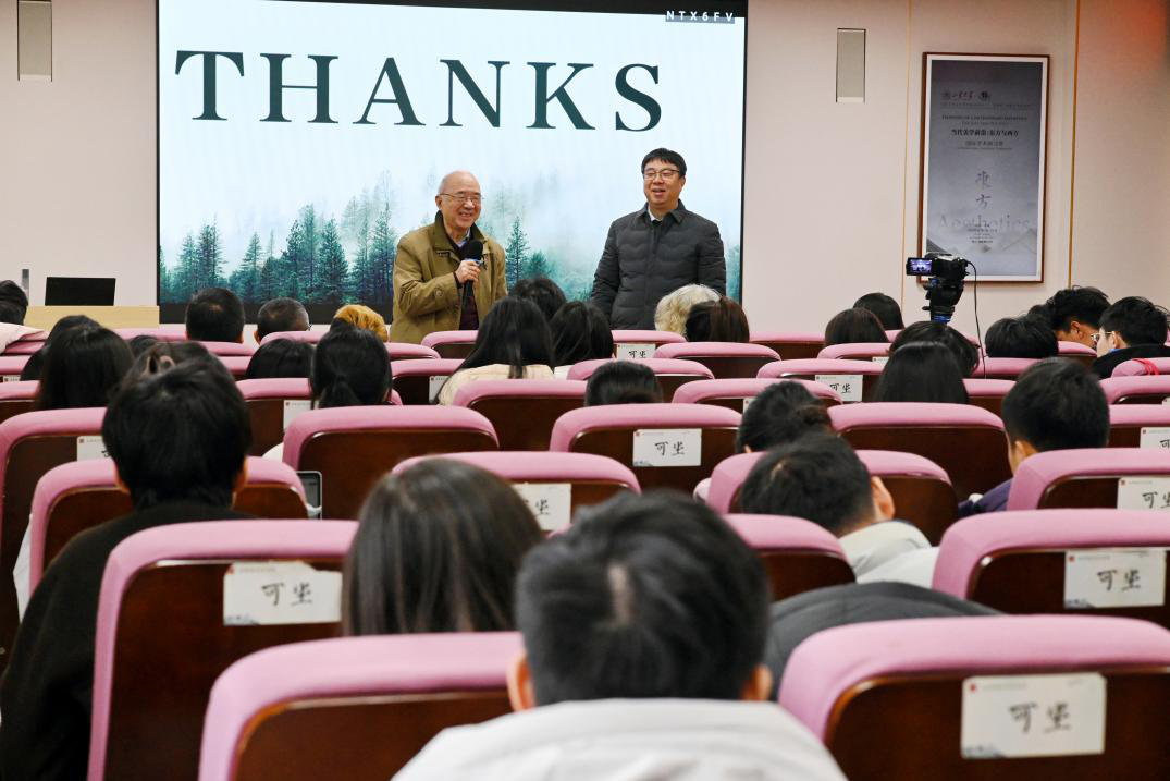杨建刚教授代表师生对曾繁仁教授的精彩演讲致以诚挚感谢。他在总结中指出,曾繁仁教授的学术道路,既是一条中西融汇的美学探索之路,也是一位人文学者以学术回应现实、以思想关怀生态的生动写照。杨建刚教授进一步强调,生态美学理论建构不仅响应了国家加快构建中国哲学社会科学自主知识体系的号召,更致力于以本土化的学术话语与国际学界展开对话,彰显了中国美学研究的文化自觉与理论创新。