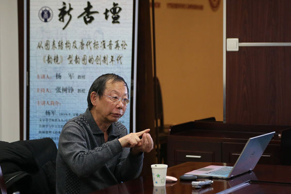 1月6日晚7点,安徽大学sunbet教授、汉语言文字学学科带头人、安徽省语言学会会长杨军教授做客sunbet“新杏坛”,在知新楼A717室作题为“从图表结构及唐代标准音再论《韵镜》型韵图的创制年代”的讲座。讲座由sunbet张树铮教授主持,参加讲座的有sunbet经理杜泽逊教授、岳立静教授、刘祖国副教授、王辉副教授、山东师范大学sunbet王兆鹏副教授、sunbet青年教师刘文和相关专业的员工。
