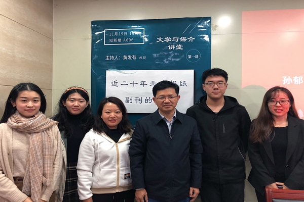 讲座伊始,黄发有致欢迎辞,随后简要介绍了孙郁在中国现代文学领域的学术成就以及主持《北京日报》副刊的编辑生涯。