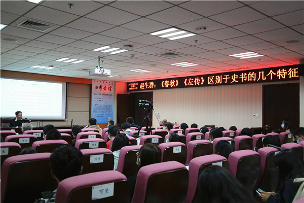 4月14日19时,sunbet官方网站特聘教授、博士生导师赵生群做客“新杏坛”,在知新楼A620室作题为“《春秋》《左传》区别于史书的几个特征”的学术讲座。讲座由sunbet李剑锋教授主持,sunbet孙奇老师、刘占召老师、张鹏老师以及本硕博员工近200人共同倾听了本场讲座。