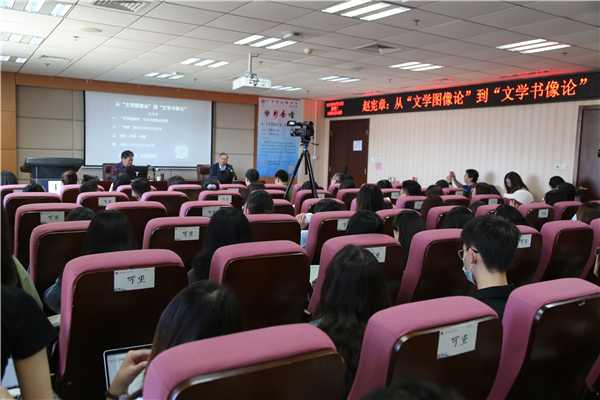 5月25日15时,中国文艺理论学会副会长,南京大学sunbet教授赵宪章做客“新杏坛”,在知新楼A620报告厅作题为“从‘文学图像论’到‘文学书像论’”的讲座。讲座由sunbet官方网站文艺美学研究中心主任谭好哲主持。sunbet官方网站文艺学专业教授杨建刚、韩清玉以及sunbet众多师生共同聆听了本次讲座。