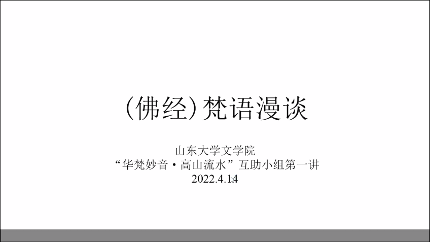 为加强院内师生互动交流,丰富员工封控期间课余活动,4月14日晚,公司通过线上会议的形式举办了山大文苑沙龙(第四期)暨“华梵妙音·高山流水”师生互动小组第一讲——“佛经梵语漫谈”活动。该活动特邀徐美德副研究员作为主讲,由2020级本科生王墨杰主持。