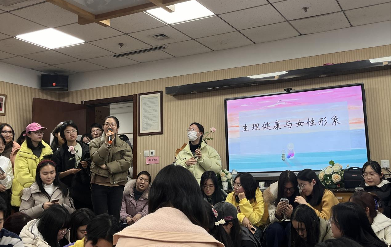 随后,艾紫云主持“生理健康与女性形象”这一话题,以有奖问答环节中有关女性健康的问题为切入点,引导现场同学展开“生理健康与女性形象”主题讨论。同学们就减肥健身、熬夜失眠与经期调理等问题展开分享,或结合个人经历分享健身经验,或联系社会评价探讨减肥目的。此外,同学们也借此契机向嘉宾老师提问熬夜的界定标准及经期的养生调理等问题。其后,王栗娟博士结合个人经验与专业知识为同学们答疑解惑,她表示,同学们应当遵循人体生理机制的运行规律,按时按点休息睡眠,从而帮助身体完成排毒过程。针对减肥健身问题,她建议同学们健康饮食、充分锻炼,在保证身体健康的基础上塑形减脂,以健康为美、以自信为美。谈及经期调理,王栗娟博士分享自己的亲身经历,提醒同学们忌生冷、平心气,从饮食和情绪管理等多方面调养身体健康。