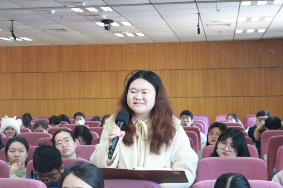 提问环节中,现场师生就所用语料的语感问题、语言学研究中的语感培养问题以及否定表达的新旧信息问题向郭锐教授提问,郭锐教授对这些问题给予了耐心的回答,师生交流气氛活跃且融洽。讲座在热烈的掌声中圆满结束。
