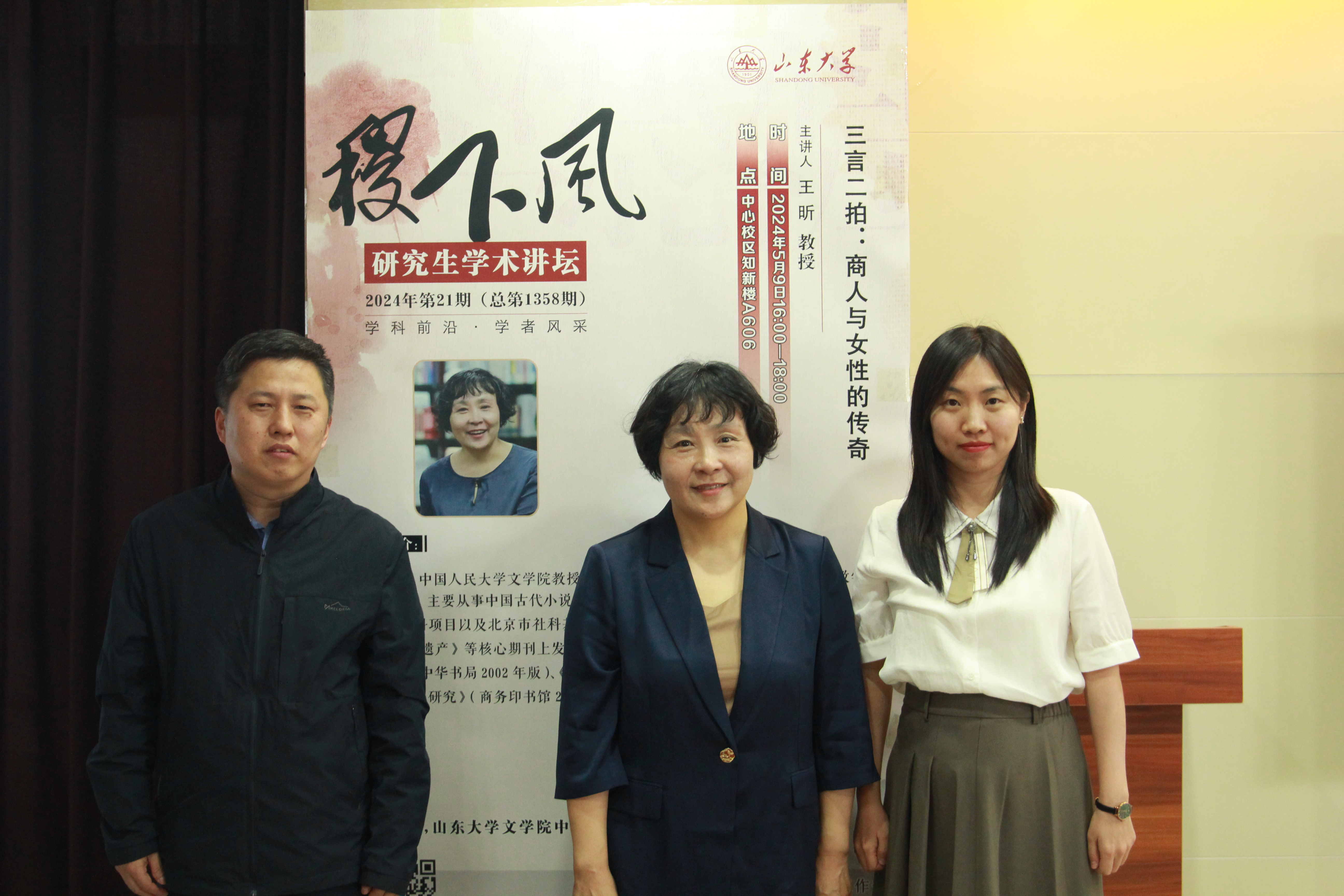 5月9日16时,中国人民大学sunbet教授、博士生导师王昕做客sunbet2024年第21期(总第1358期)“稷下风”研究生学术讲坛,作题为“三言二拍:商人与女性的传奇”的学术讲座。本次讲座公司副经理樊庆彦教授主持,蓝青副研究员出席,吸引数十名师生前来聆听。