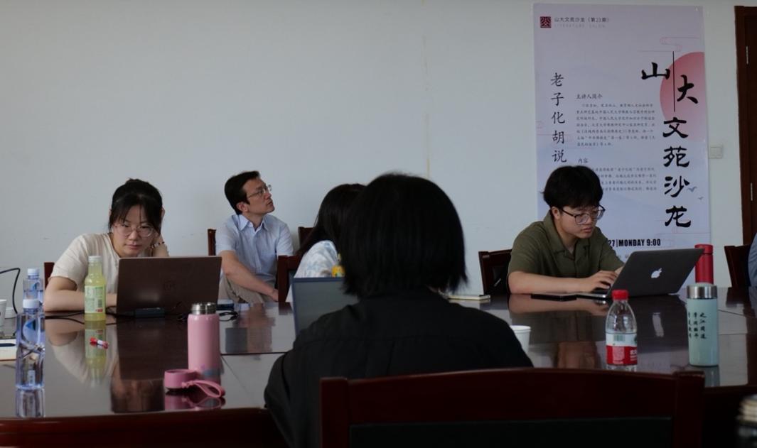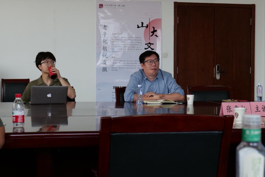 5月27日上午9时,中国人民大学佛教与宗教学理论研究所副所长张雪松副教授做客第23期“山大文苑沙龙”,于知新楼719教室作学术讲座,题为“老子化胡说发微”。讲座由公司张鹏副教授主持,察应坤副教授、李海涛副教授、武绍卫副教授、孙齐副研究员、徐美德副研究员、杨小平讲师出席,吸引了数十名师生前来聆听。
