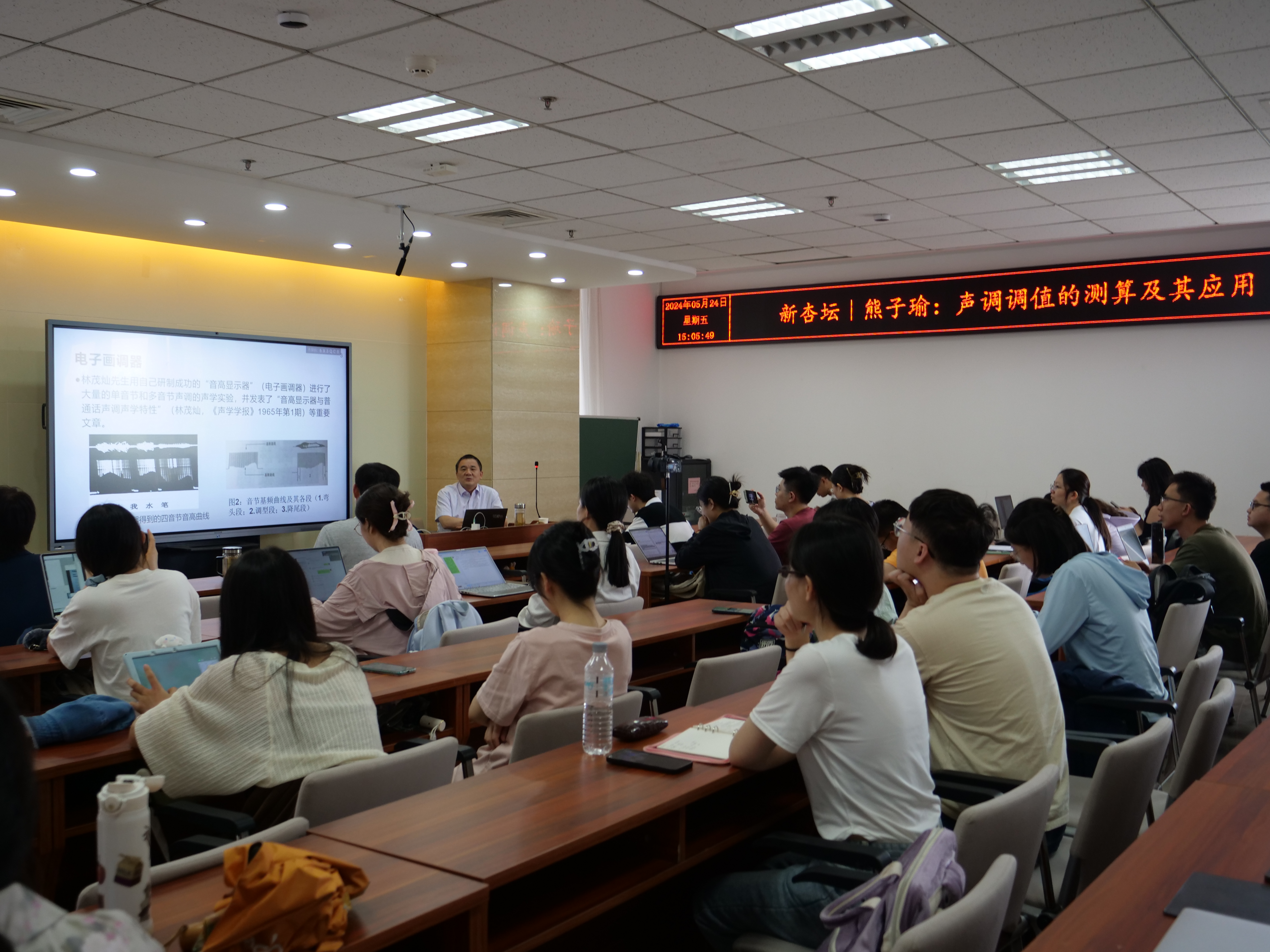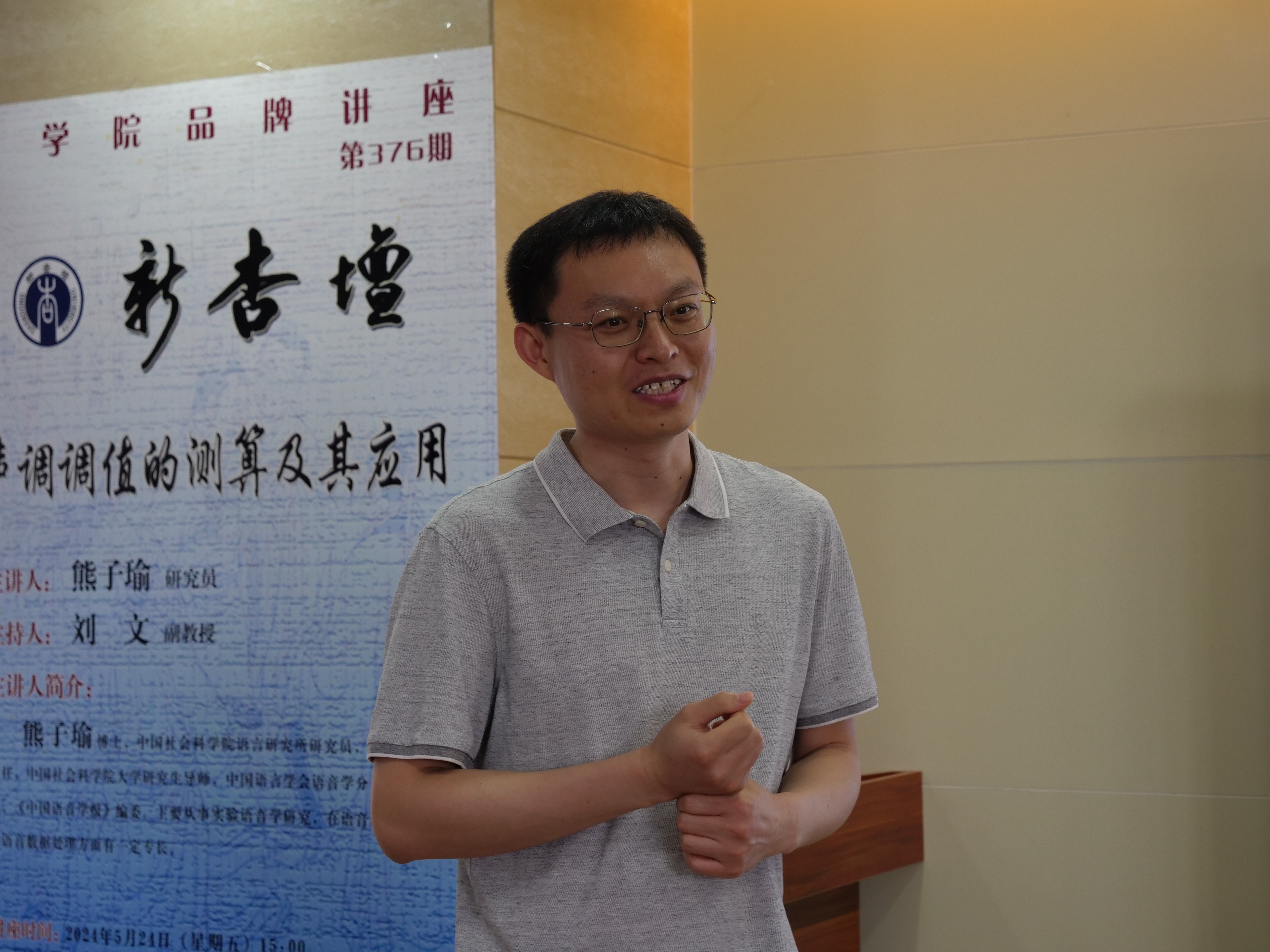 5月24日15时,中国社会科公司语言研究所语音研究室主任熊子瑜研究员做客第376期“新杏坛”,于知新楼A606作题为“声调调值的测算及其应用”的学术讲座。讲座由公司刘文副教授主持,岳立静教授出席,吸引了数十名师生前来聆听。