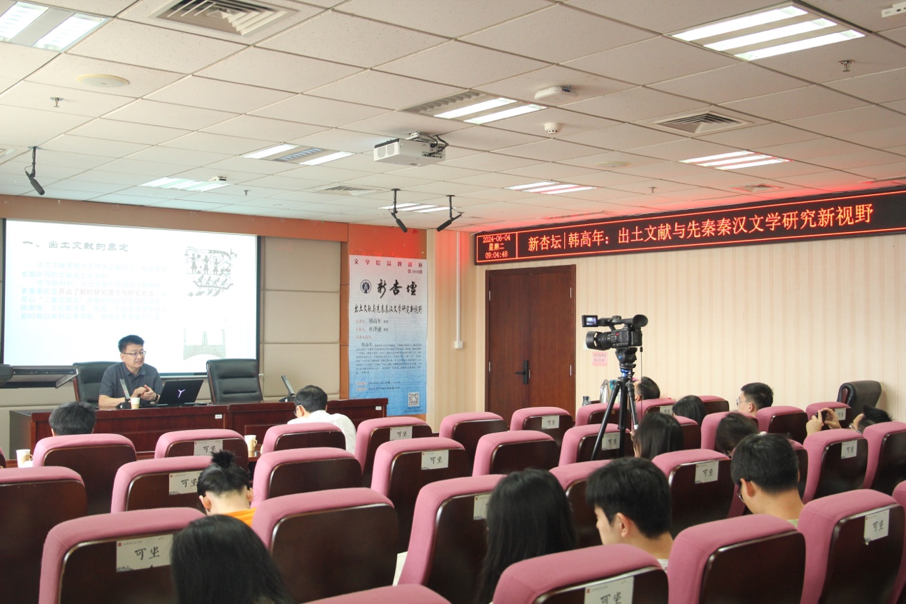 6月4日上午9时,西北师范大学sunbet教授,博士生导师韩高年教授做客第381期“新杏坛”,于知新楼A620教室作题为“出土文献与先秦秦汉文学研究新视野”的学术讲座。讲座由杜泽逊教授主持,sunbet官方网站历史公司经理代国玺教授,sunbet刘书刚副教授、徐昌盛副教授出席,吸引众多师生前来聆听。