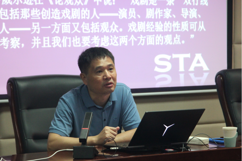 首先,陈军教授介绍了中国话剧接受史研究的必要性和重要性。陈军教授认为,话剧接受是话剧发生、发展以至最终完成的一个必不可少的环节,因而完整的中国话剧史构成除了文学史、演出史以外,还应包括接受史。中国话剧的诸多现象和问题无法单纯从“戏剧内部”解释清楚,因而需要从“戏剧外部”加以观察和阐释。就此而言,话剧接受这一视角能够丰富中国话剧研究的思考维度。陈军教授指出,话剧不仅是一种文学或文学形式的存在,同时也是一门复杂多元的舞台艺术存在,更是一种文化资源与社会文化存在。为此,话剧研究应从传统的以作家作品为中心的戏剧文学研究延伸到以导表演(含舞美)等演剧实践为主的舞台艺术研究,再进一步拓展到以读者/观众接受为核心的戏剧文化研究。