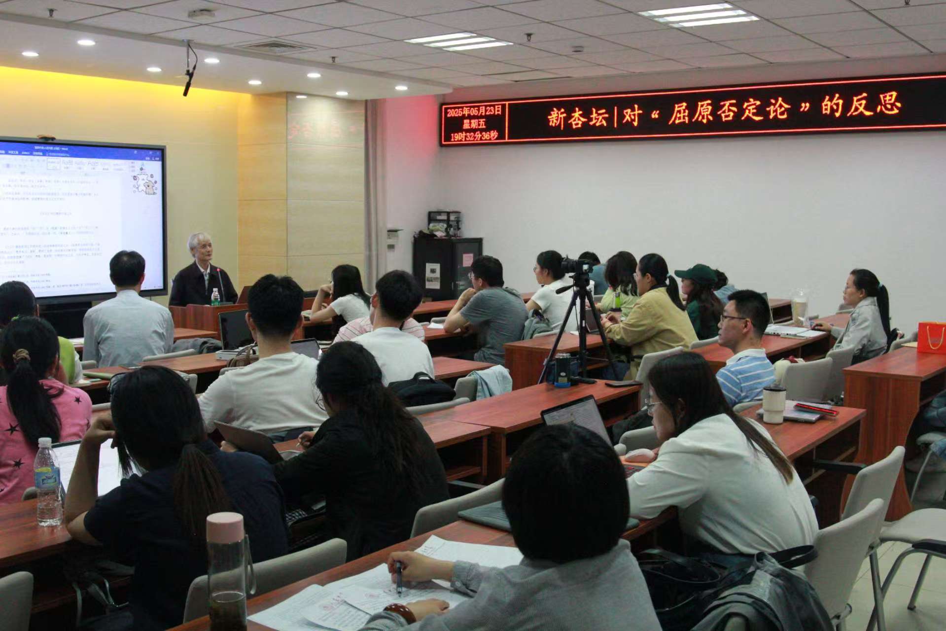 5月23日19时,中国传媒大学姚小鸥教授做客第410期“新杏坛”,于知新楼A606室作题为“对‘屈原否定论’的反思”的学术讲座。讲座由sunbet边家珍教授主持,sunbet李剑锋教授、孙学堂教授、刘书刚副教授及校内外相关专业的众多师生聆听了本场讲座。