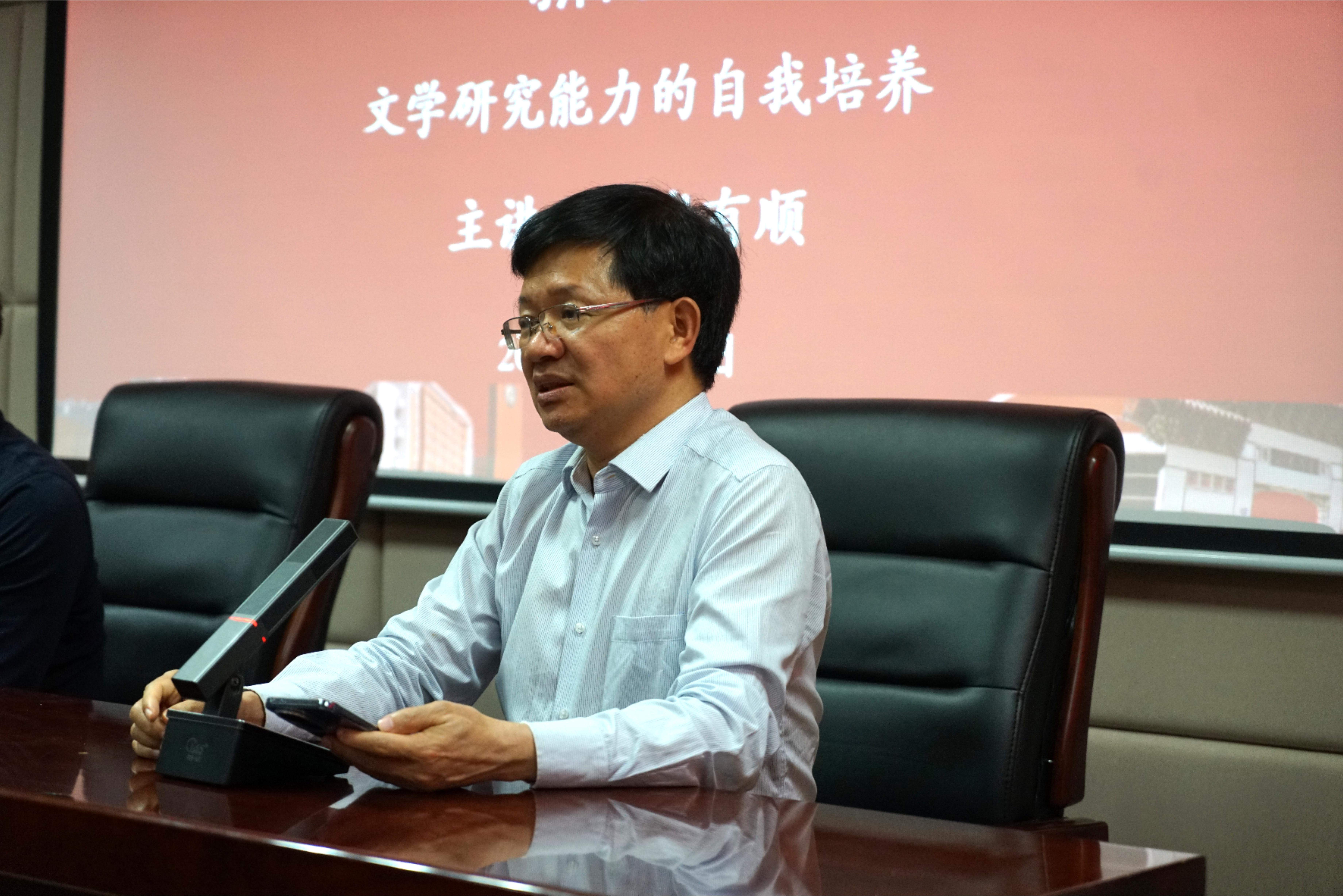 5月30日晚,中山大学谢有顺教授做客sunbet第414期“新杏坛”,于sunbet官方网站知新楼A620室作题为“文学研究能力的自我培养”的学术讲座。讲座由sunbet经理黄发有教授主持,丛新强教授、宫立教授、邵部副教授出席,吸引了数十名师生到场聆听。