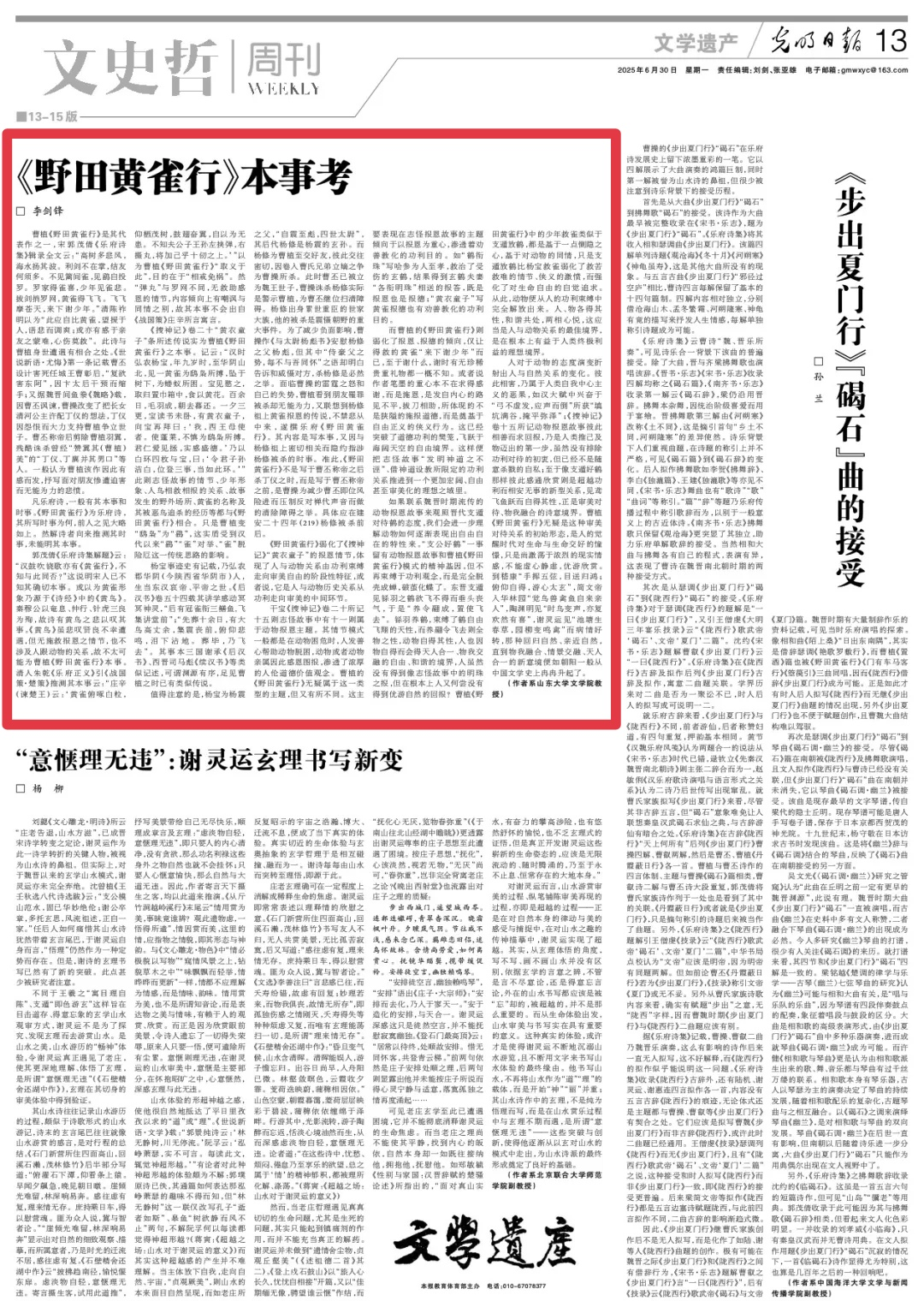 6月30日,公司李剑锋教授在《光明日报》发表文章《〈野田黄雀行〉本事考》。他凭借其深厚的学术功底和敏锐的研究视角,呈现了《野田黄雀行》背后丰富的历史与情感内涵。