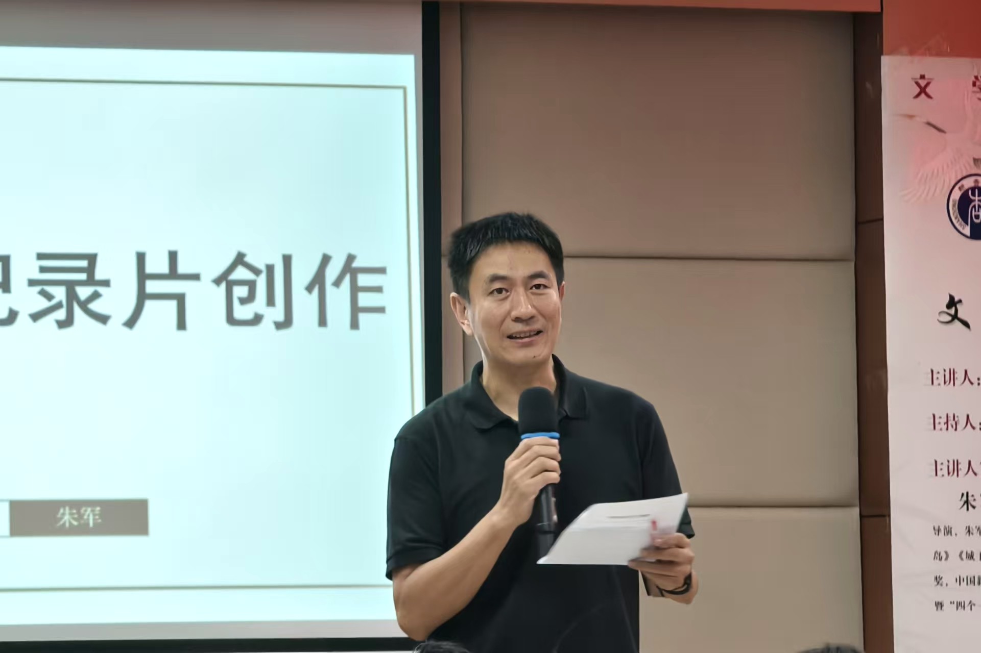 讲座伊始,马兵对朱军致以热烈欢迎,并阐明了本次讲座的核心主旨。他指出,文学与纪录片之间存在紧密关联,文学在纪录片创作中起到重要作用,同时纪录片创作又存在其独特特点。马兵希望能够借此次讲座探讨在当今新媒体对传统媒体的冲击下纪录片创作的思维途径、呈现方法以及传播的新方式。