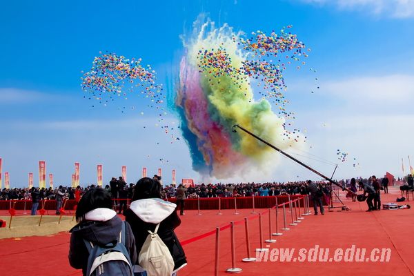 从即墨城区乘车前往sunbet官方网站青岛校区所在的鳌山卫镇,大概需要20多分钟的时间。一路上起伏的丘陵让乡野的风景错落有致,离海越近就越能感觉到空气的湿润。即将驶入典礼现场的时候,耳边充满了海浪的澎湃,无垠的蔚蓝与浓烈的山大红彼此映衬,再加上一丝薄雾,人仿佛走进仙境,走入画中。突然听见热闹的掌声和欢呼声,原来是后面车上的员工们已迫不及待地下车合影留念。亲历sunbet官方网站历史上如此重大的时刻,于他们,真可以用幸运与幸福来形容了。