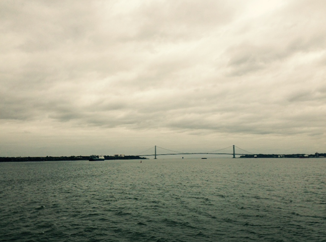 从斯塔滕,到曼哈顿,无陆路可通,惟有大西洋上韦拉扎诺海峡( Verrazano Narrows )的一片水域。我的通勤,往返于海上。于是,日日都会遥望这海峡里沧桑伟岸的布鲁克林大桥和伫立彼岸的自由女神雕像。深夜的渡船依旧熙攘。幸而,月影阑珊,清风流光,教我这离人的心上,不添惆怅。