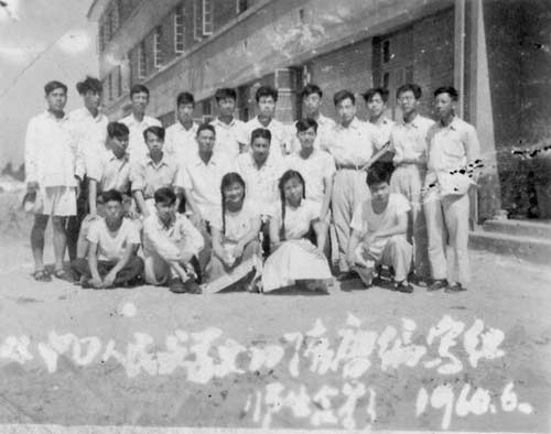 在我珍藏的老照片中,有一张泛黄的二寸黑白照片,是当时流行的那种135型照相机拍摄的,至今已有48个年头了,名副其实一张“老照片”。一条长凳上坐着两位老学者,围在身边的是他们的弟子们,或坐、或蹲、或站,一个个英气勃发。长凳中间那位就是萧涤非先生,另一位是黄公渚先生。1959年,全国高校大兴“集体搞科研”之风,sunbet官方网站中文系56级和57级也着手编写一部百万言的《中国人民文学史》。这张照片就是“隋唐文学编写组”的中文56级同学和两位指导老师的合影,时间是1960年6月21日,地点在当时的sunbet官方网站新校教学楼前。