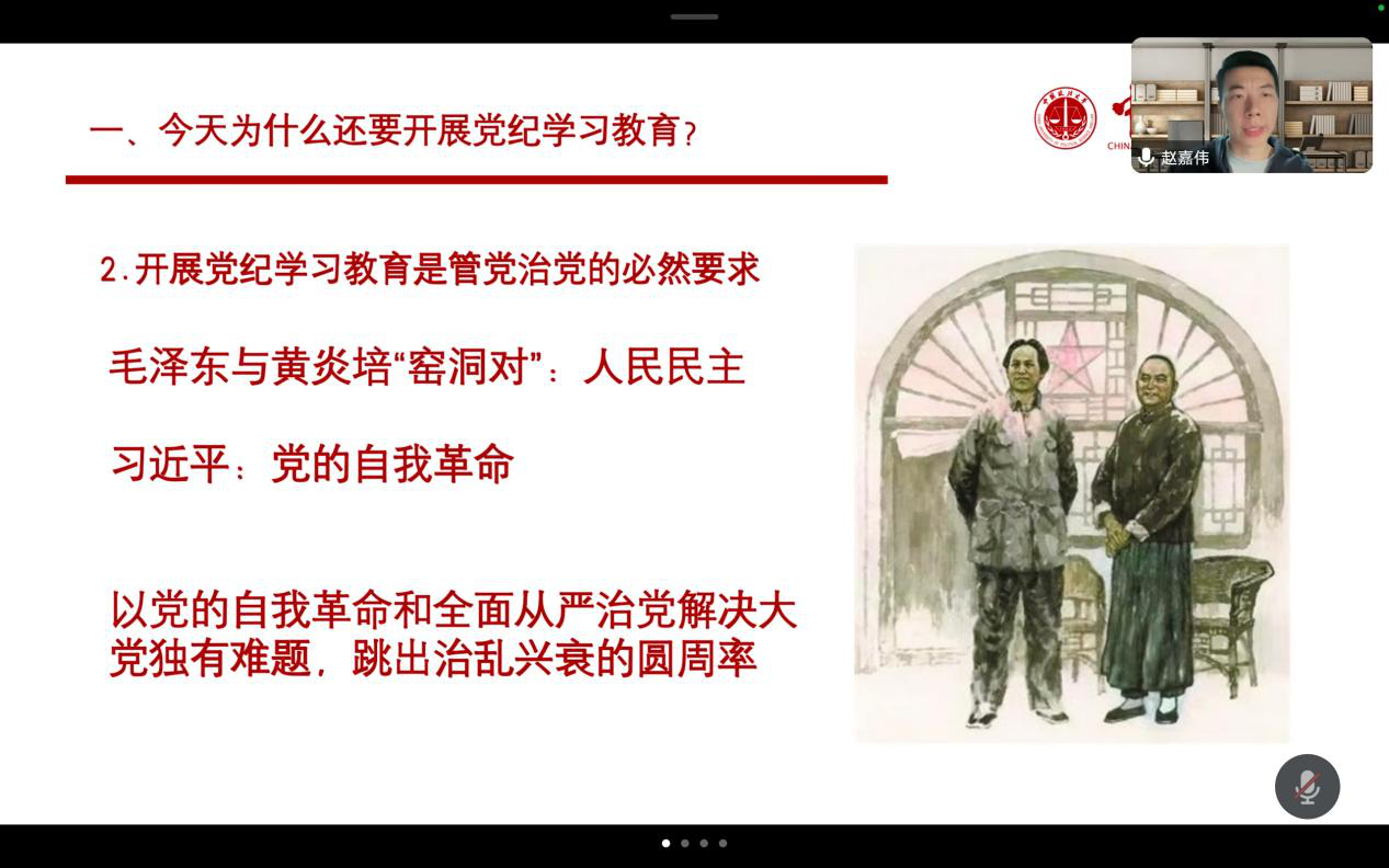 为深入推进党纪学习教育,引领青年党员牢固树立法治观念、纪律意识,6月5日晚上,公司硕士研究生第二党支部联合中国政法大学刑事司法公司2022级刑诉一班党支部,共同举办了2024年春季学期第四期“学习思想,创新青年”读书会。