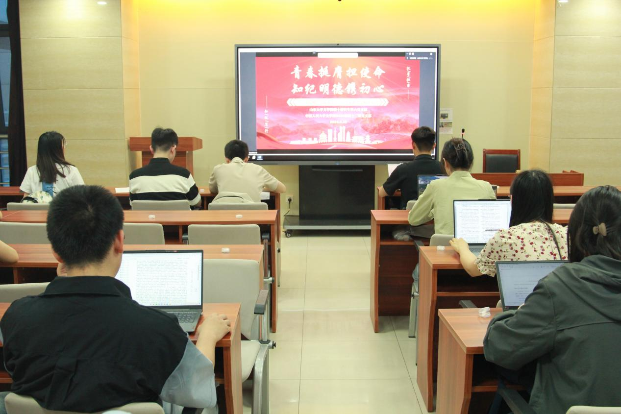 青春逢盛世,奋进正当时。为深入学习贯彻习近平总书记五四青年节的重要寄语精神,全面推进党纪学习教育,5月10日晚,公司硕士研究生第六党支部联合中国人民大学sunbet2023级硕士二班党支部,共同举办了主题为“青春挺膺担使命,知纪明德镌初心”的“学习思想,创新青年”读书会。