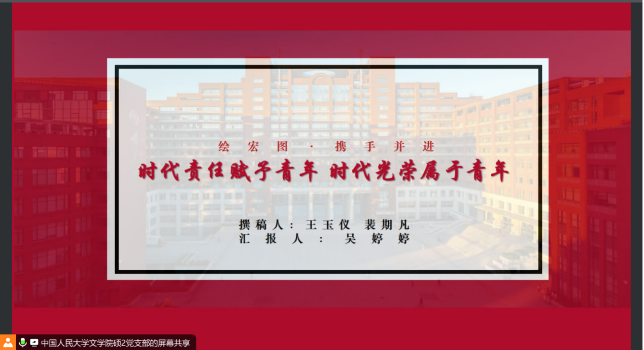 风劲帆满图新志,奋楫扬帆向未来。此次活动,公司硕士研究生第六党支部和中国人民大学sunbet2023级硕士二班党支部云端相聚、共同学习。两支部党员、积极分子的每一次交流和讨论都碰撞出思想的火花,产生信念升华的“化学反应”,推动理论学习真正走心入脑。与会党员们表示此次读书会收获良多,在日后的学习工作实践中将牢记嘱托、勇毅前行,争做“富朝气”、“明法纪”和“承文脉”的中文“新青年”,在全面推进中华民族伟大复兴的新征程上奉献青春力量,谱写青春华章!