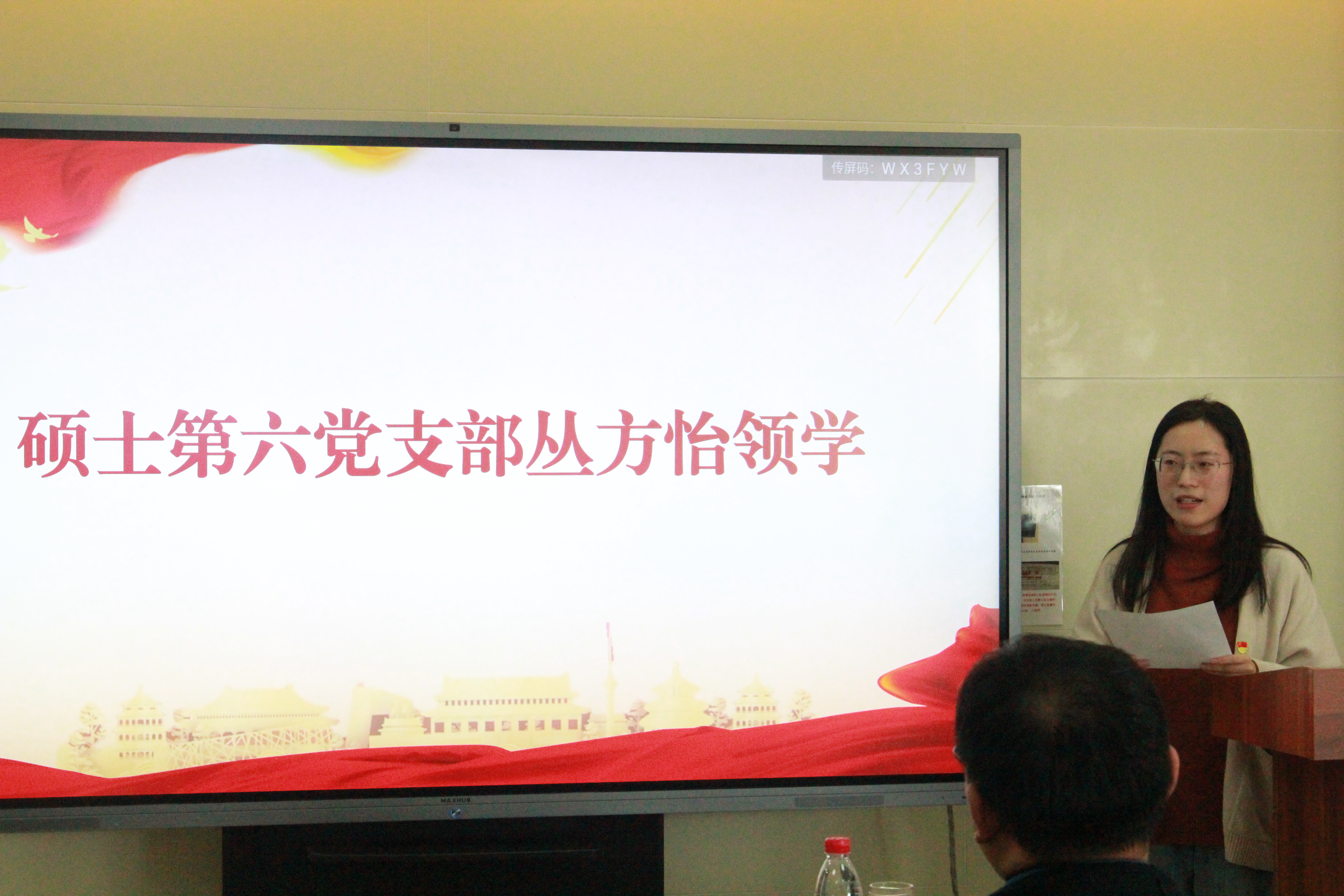 古代文学党支部徐昌盛老师和刘书刚老师受邀参与本期读书会,硕士第六党支部书记李方政主持此次会议。硕士第六党支部全体党员现场参会。