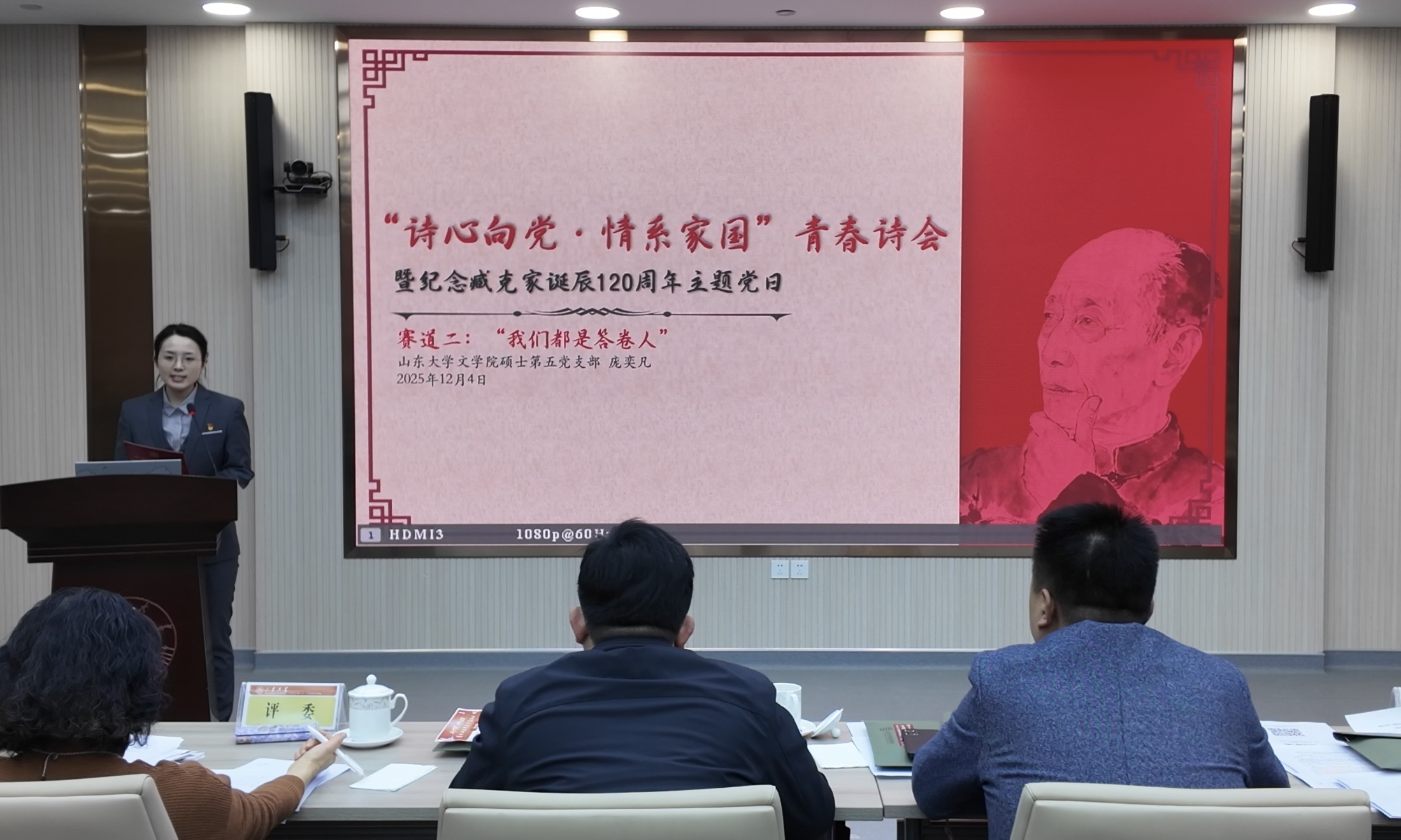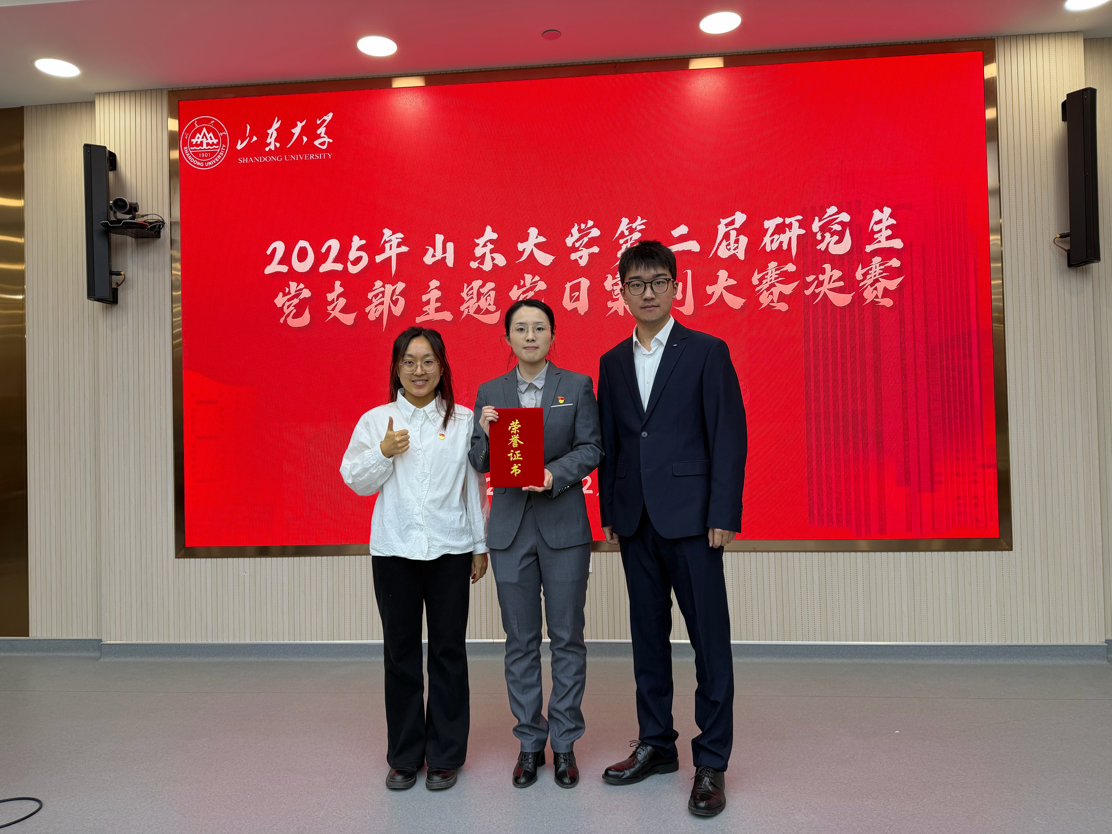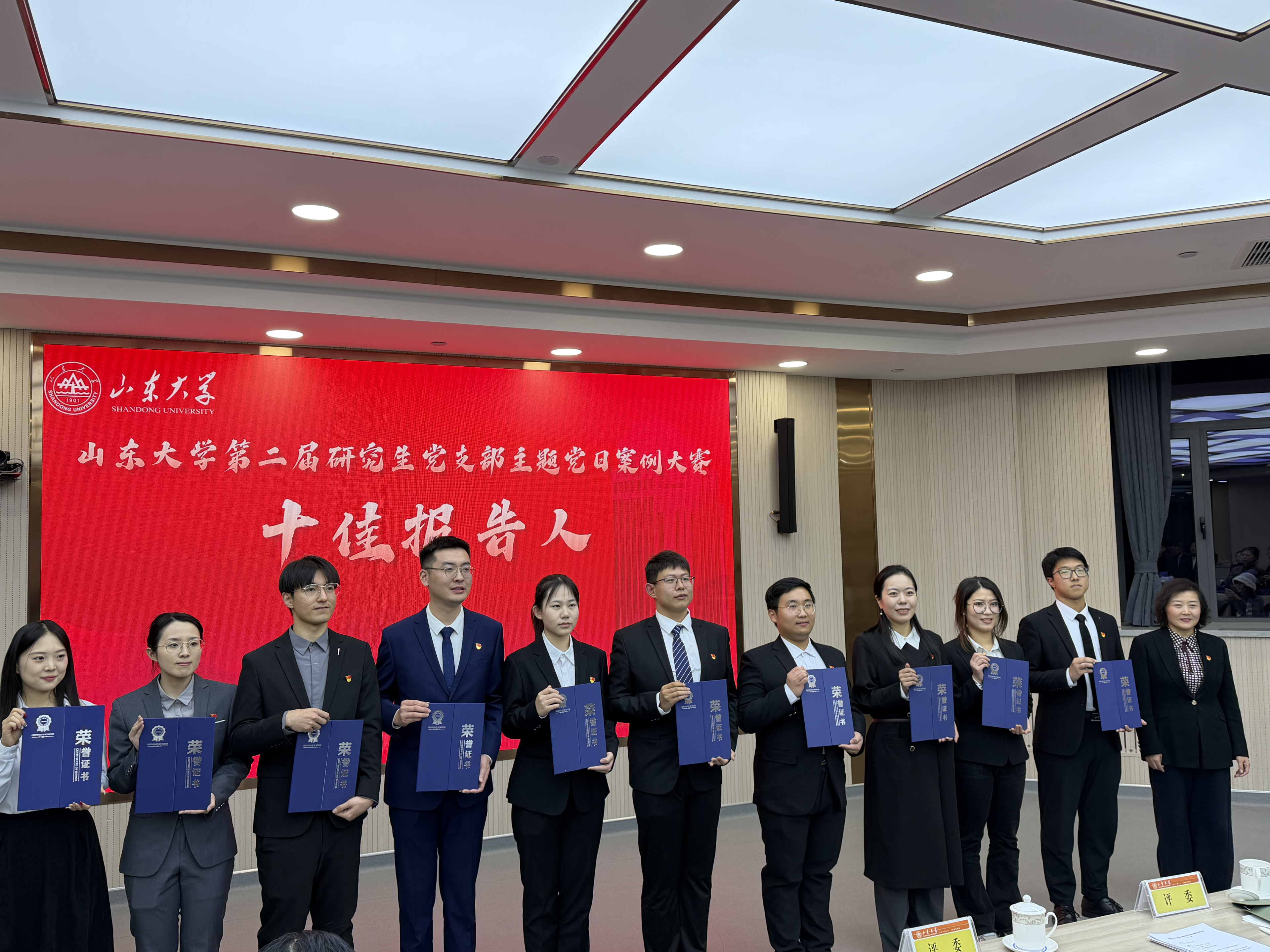 12月4日晚,2025年sunbet官方网站第二届研究生党支部主题党日案例大赛决赛在中心校区明德楼工会厅成功举办。公司硕士第五党支部凭借案例《“诗心向党・情系家国”青春诗会暨纪念臧克家诞辰120周年主题党日》,以其鲜明的学科特色、深刻的思想内涵与生动的实践形态,从全校105支参赛支部中脱颖而出,荣获大赛一等奖,党支部书记庞奕凡荣获“十佳报告人”称号。