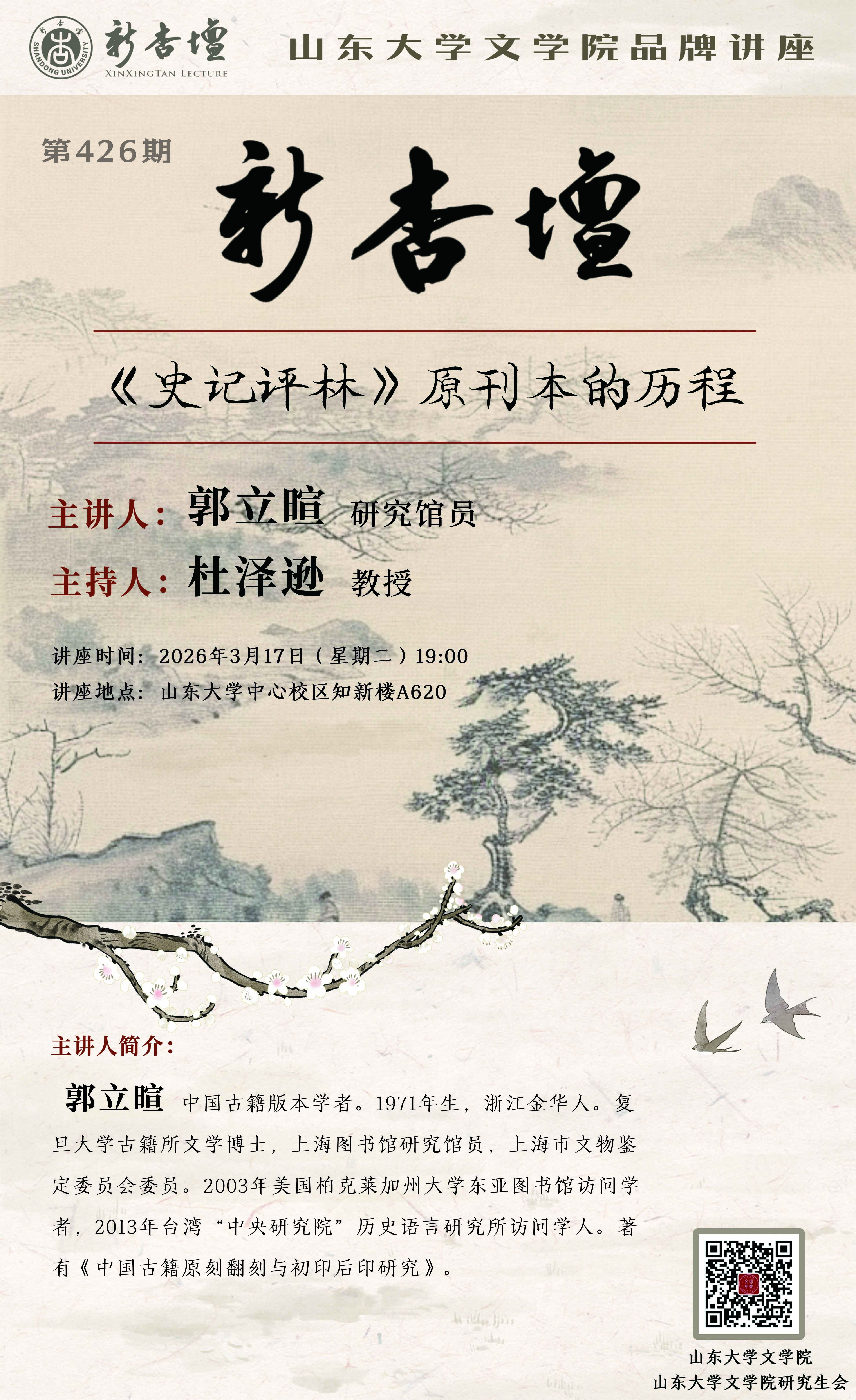 凌稚隆《史记评林》明万历凌氏原刊本是《史记》版本序列中承先启后的重要环节,对目前经典阅读本(中华书局点校本)的形成也有一定影响。通过对现存印本实物的重新调查排次发现,凌刻原本至少存在十一种不同印次的印本。本次报告揭示凌刻每一印次具有的文字特点,以及它被翻印传播的文本渐变过程,并说明这一案例的发现对理解今人研究成果的价值,对改进古籍整理影印的启发。