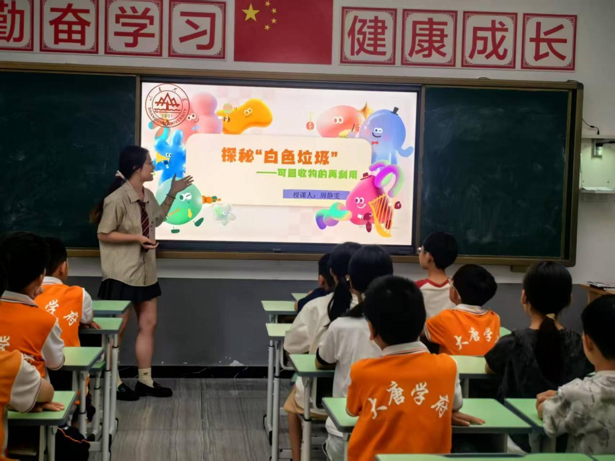 在社区场景中,团队走进济南甸柳第一社区、上海花园社区及安徽省界首市民族社区等地,通过“理论+实践”模式开展分层科普。成员们借助课件、动画和手工课等形式,讲解塑料危害与回收知识,引导孩子们利用废弃材料进行艺术创作。后续反馈显示,许多孩子带动家庭实施垃圾分类,让环保走进日常生活。乡村校园中,团队更注重接地气的传播方式;在临沂大唐学府,则通过真实图片和实物展示,让员工直观感受塑料污染,推动“减少使用塑料袋”等建议成为共识。