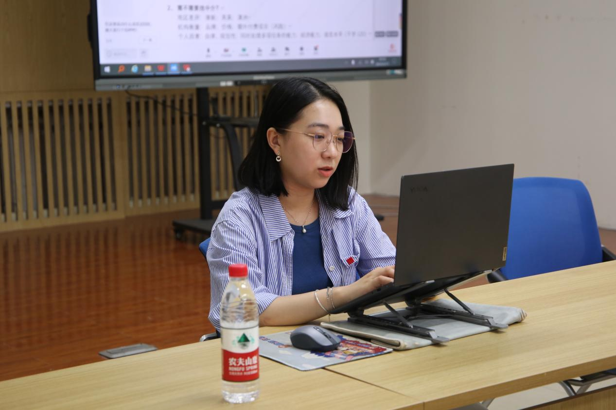 程佩璇解说了确定留学意愿、寻找留学中介、选择留公司校的考虑因素,随后按照时间顺序分享了境外升学全流程经验。她说明了境外留学对学业成绩、科研竞赛、外语水平的基本要求,着重介绍了所需文书材料及撰写方法,为同学们提供了详实的参考信息与清晰的思路指引。此外,她以新加坡国立大学、香港大学为例梳理了留学面试流程,并提出了切实可行的备考建议、分享了提升面试表现的技巧。
