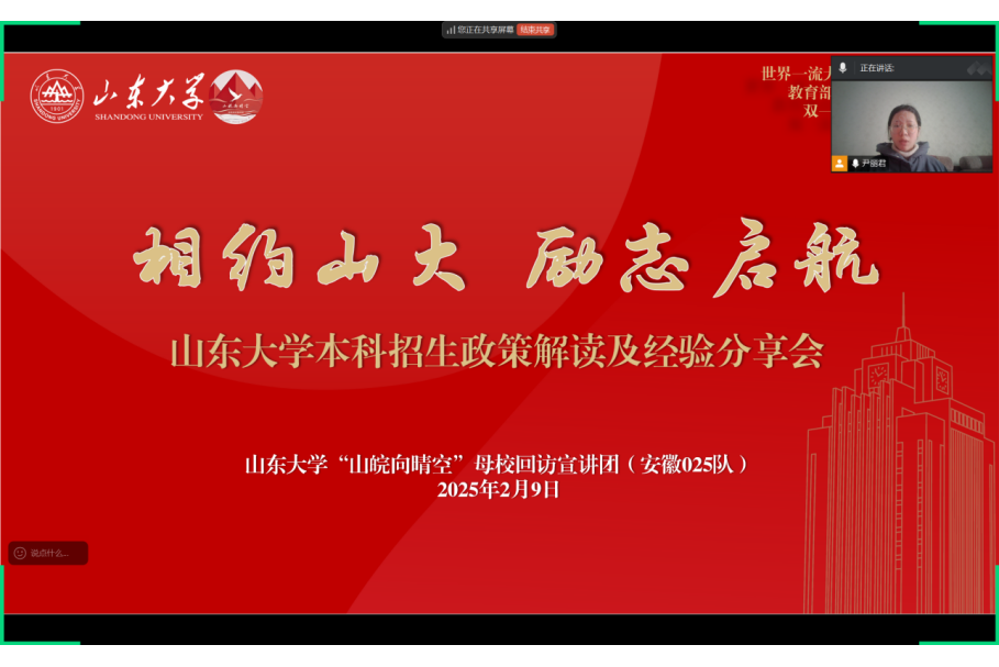 线下宣讲结束后,团队召开线上宣讲会,系统梳理了山大招生政策、学科优势及校园生活,并邀请往届优秀学子分享学习经验,吸引了众多员工与家长的参与。会后,团队邀请考生进入答疑群,希望以“宣讲—跟进—反馈”的完整链条,持续为考生提供咨询服务,帮助考生进一步了解山大具体情况、汲取优秀学长学姐学习经验。团队成员以实际行动充分展现了山大学子的责任担当与实践能力,为考生从多方面、多角度、多层次深入了解山大、关注山大提供了充分帮助。