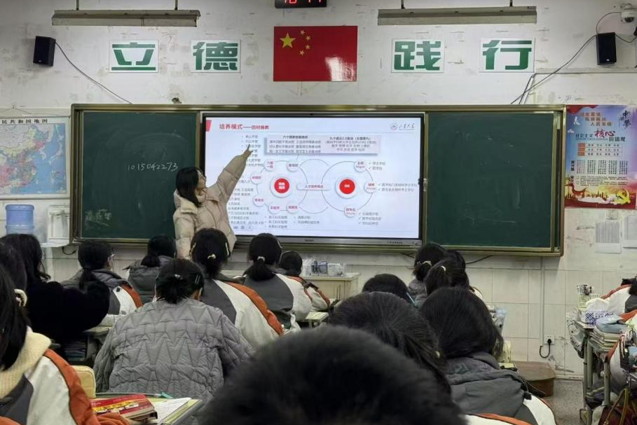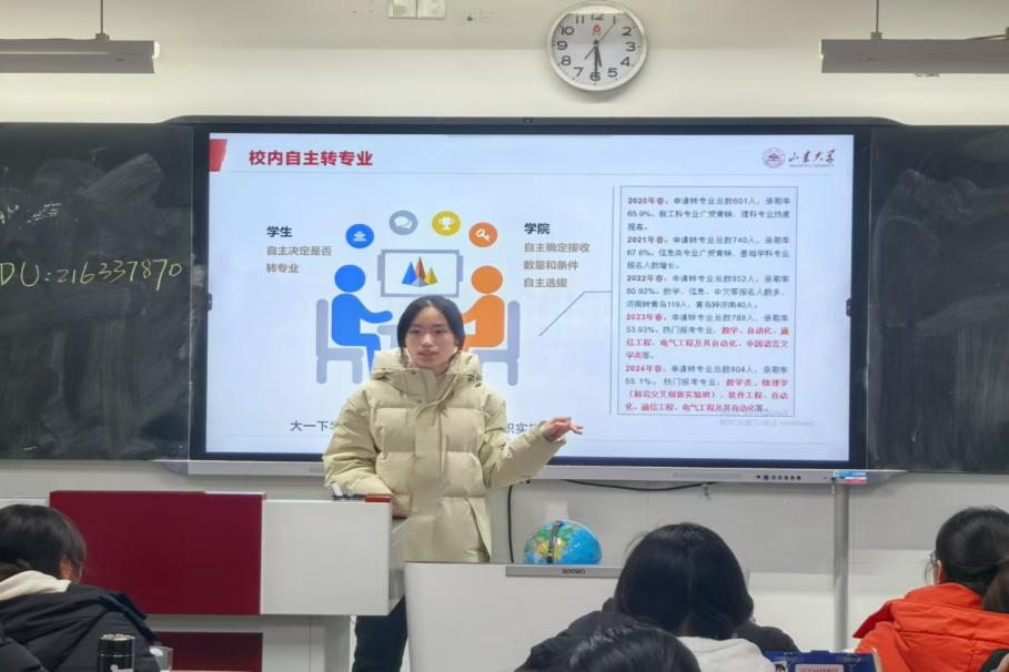 随后,团队成员分别与所在地的中学联络并有序开展宣讲实践。何雨琪、徐心妍首先以PPT展示自己在山大公司的求学、交友、生活的体验感悟,随后对山大的团队建设与培养模式进行整体介绍,并重点解读了sunbet官方网站在江苏省的招生计划和类型。季小楠、张思涵、佘俣瑶生动讲述了山大的历史渊源与学术底蕴。宣讲结束后,团队专门设置答疑环节,耐心倾听同学们的问题并结合自身经验给予经验。此外,胡思余在校内进行展台活动,为过往的同学与家长发放招生宣传手册,并鼓励学弟学妹们在明信片上写下对山大或对未来的自己的寄语与祝福。她还与南大、上交等五所高校的同学联合开展面向全校的线上宣讲,有效扩大了宣讲的影响范围。陆绎璇则参与了母校举办的“员工返校交流会”专场宣讲会,详细介绍了山大的发展历程、各项成果以及一校三地八大校区的特色,并结合自身的备考经历为学弟学妹们加油鼓劲。详实的内容加上创意的形式牢牢吸引着参与同学的目光,他们纷纷表示对山大、对自己的目标及其实现路径获得了更加清晰的认识。