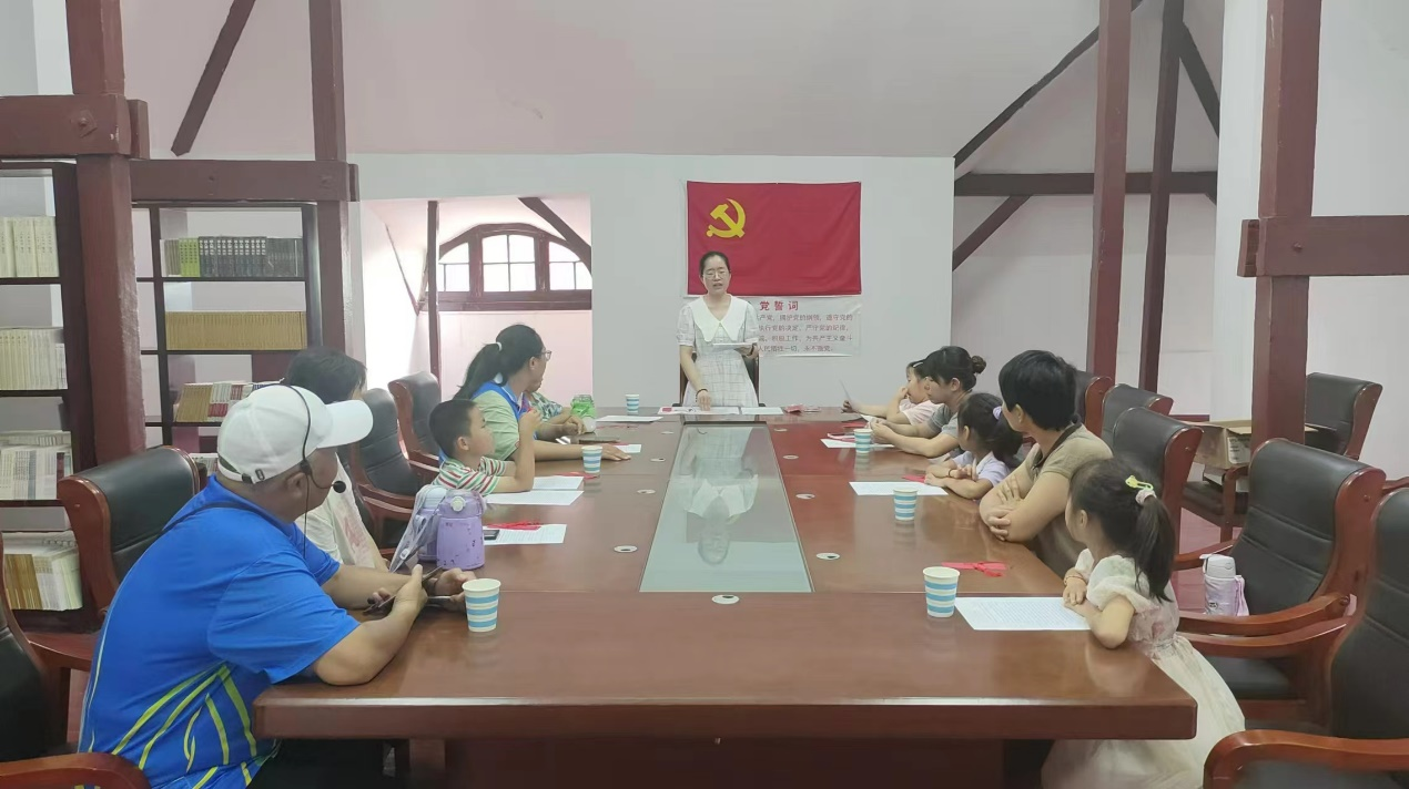 8月8日,团队于蔡公时纪念馆开展了红色主题宣讲活动。队员们与到场的员工和家长共制“红色书签”,并鼓励他们将革命先烈的红色事迹及个人爱国情怀融入到设计之中,以书签为载体致敬伟大革命前辈、传承赓续红色精神。队员们的热情和专注深深感染了每一位员工和家长,本次活动也受到了指导老师和蔡公时纪念馆党支部负责人的高度评价。
