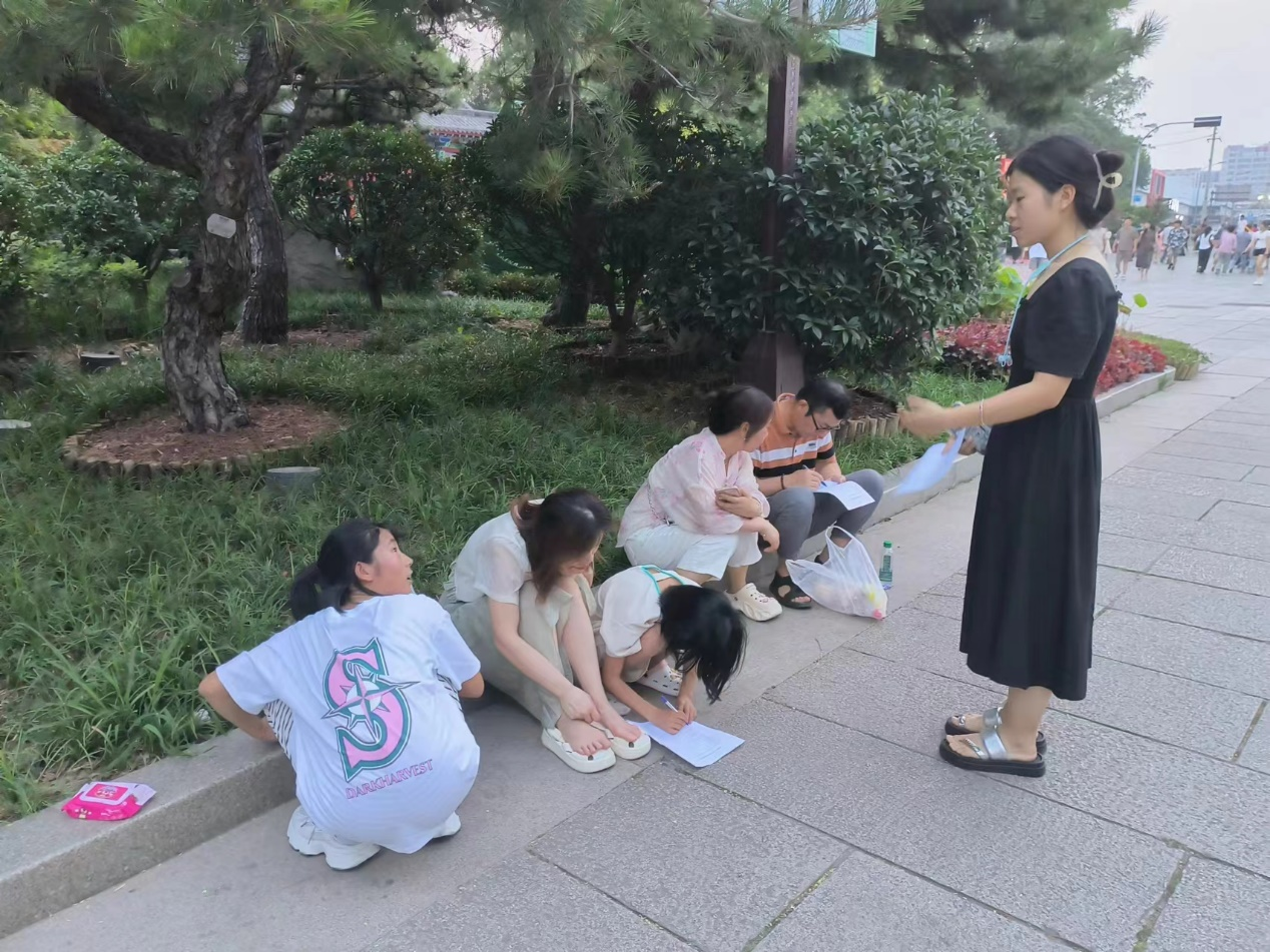 在线下调研和宣传阶段,团队以济南历史文化名人纪念馆的自身建设与公众认知度为主要切入点,同纪念馆工作人员进行交流。在调研过程中,团队成员认真思考、分析总结纪念馆存在的不足之处和改进可能。除前往纪念馆考察并获取一手资料外,团队还关注到了游客的体验与需求。通过在大明湖、趵突泉等景区发放调查问卷,成员们收获了有力的数据支持和多方宝贵建议,为团队后续的材料撰写提供了参考。