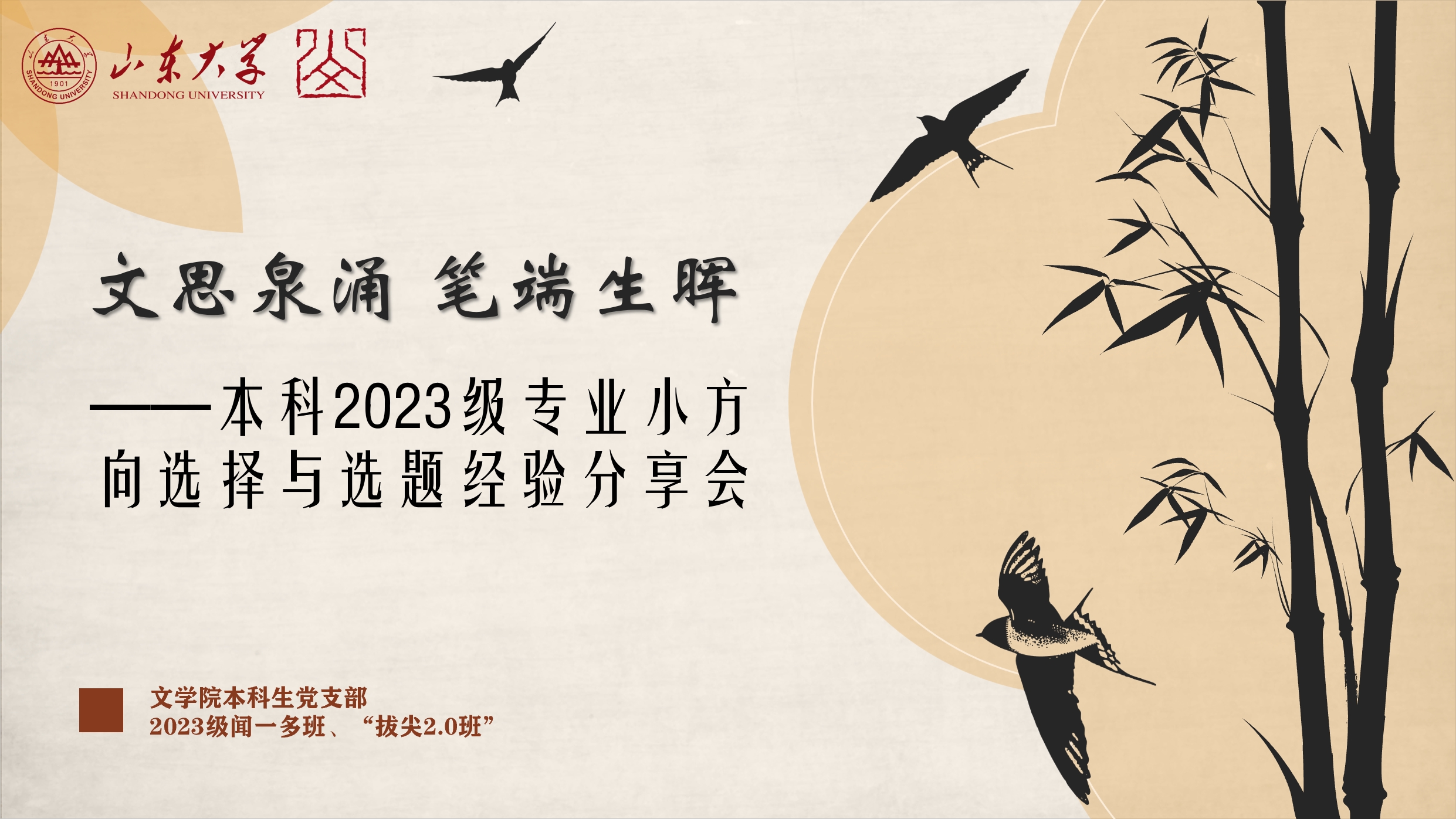 为进一步加强对本科生撰写学年论文的指导,帮助同学们充分了解各二级学科、拓宽学术视野,强化新时代文学拔尖人才培养,8月20日晚,公司2023级闻一多班、“拔尖2.0班”联合本科生党支部,为即将步入重要关口的2023级本科生开展了一场别开生面的经验分享会。“拔尖2.0班”成员、2023级本科生李韶涵主持会议。