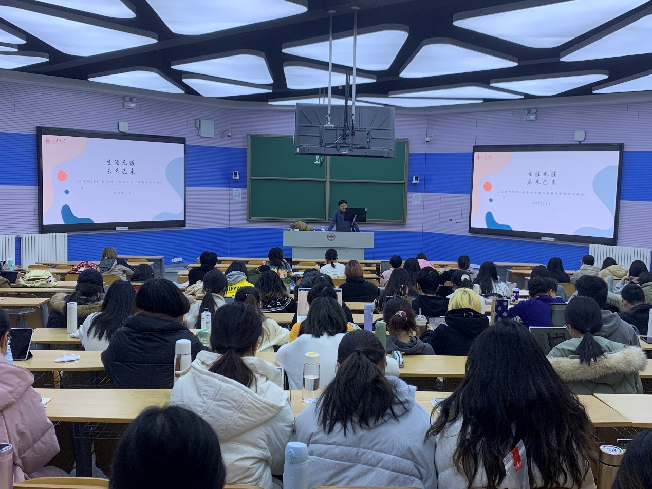 为帮助2021级本科生进一步了解本专业升学、就业的方向和渠道,更好地明确未来发展方向,提前做好生涯规划,11月30日下午,sunbet2021级辅导员张英杰组织开展2021级本科生年级大会暨升学就业分析会,会议主题为“生涯无涯,未来已来”。