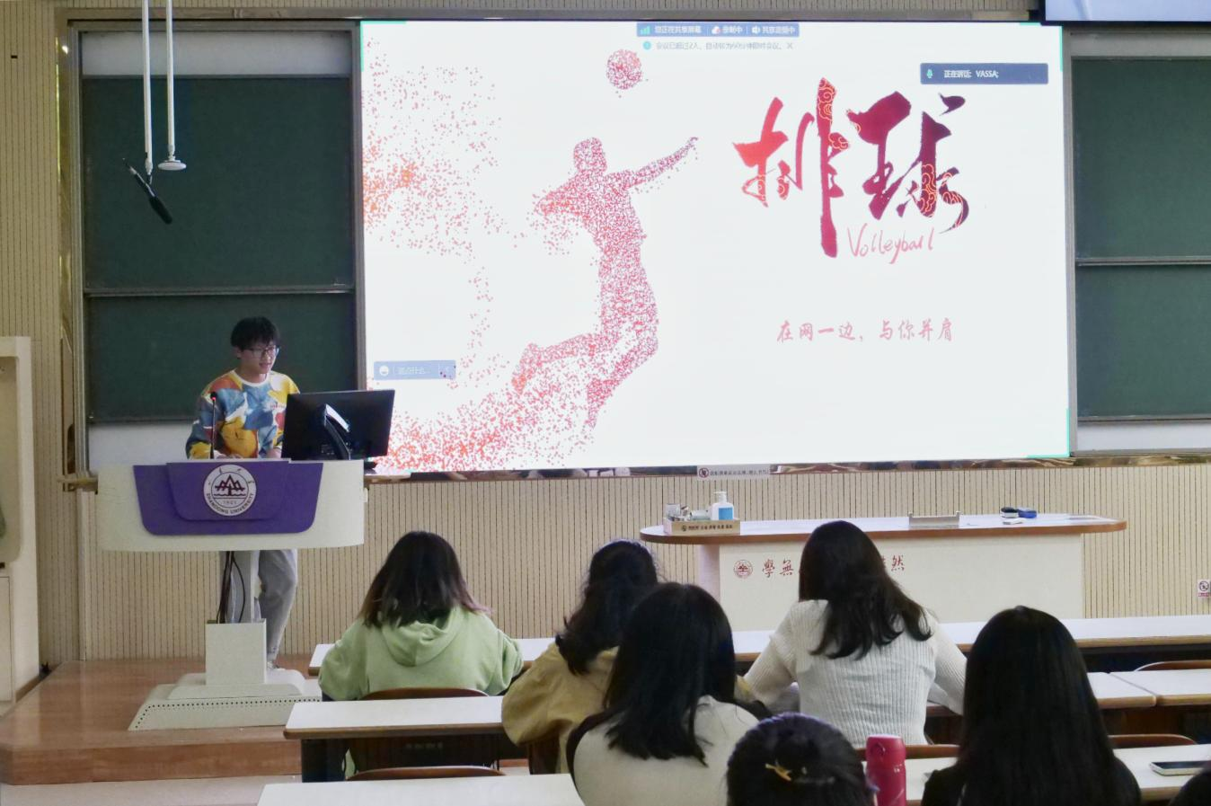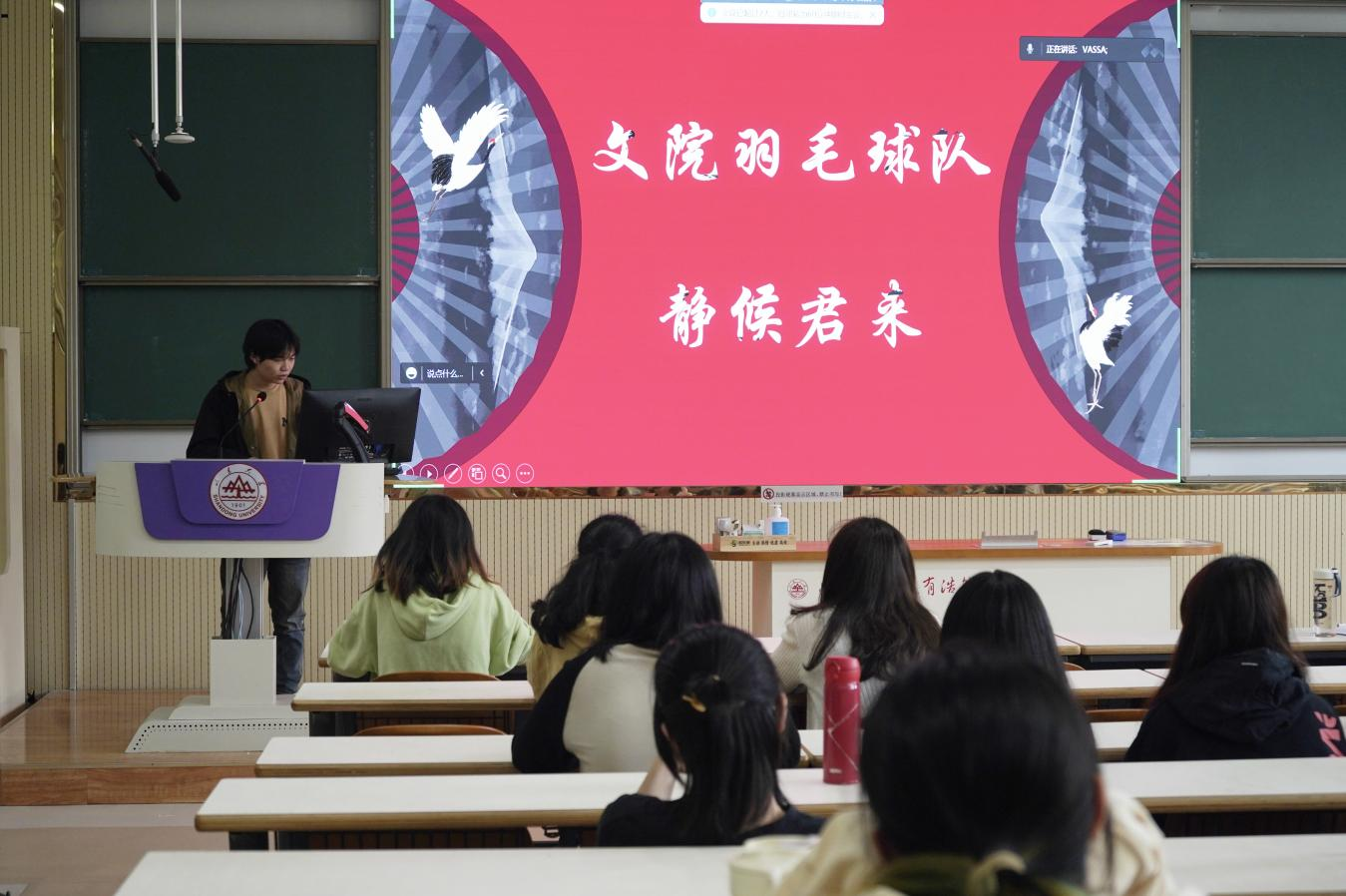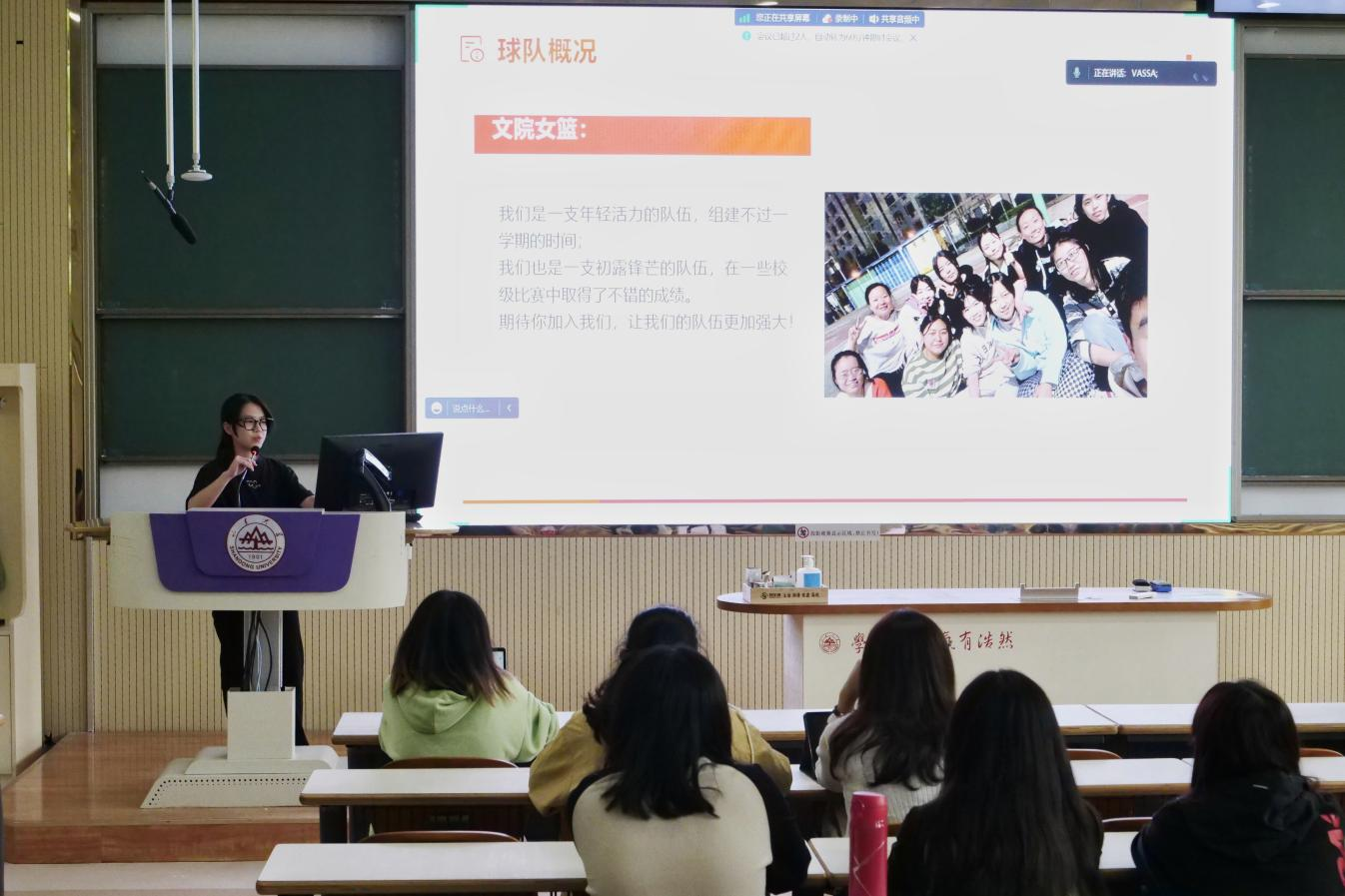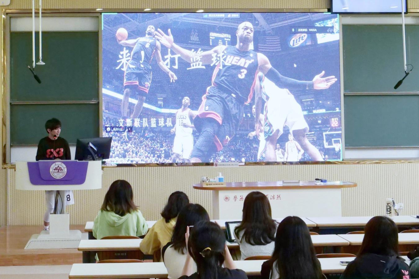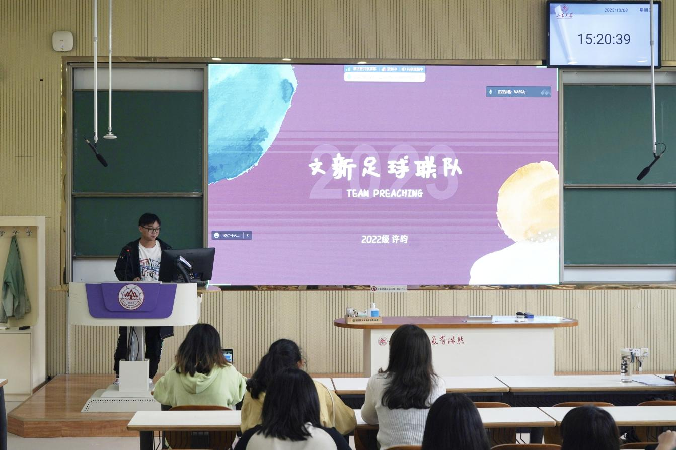 会上,公司各球队率先展开宣讲。文新篮球队、公司女篮、文新排球队、文新足球队、院羽毛球队分别介绍了各自团队的日常训练、活动赛事与纳新要求,有利于新生初步熟悉院队基本情况,做出符合自身兴趣、有助未来发展的选择。此外,各球队借助丰富的影像资料,直观展示了球队拼搏向上的精神风貌与活泼友爱的团队氛围,充分激发了新生参与体育活动的热情,增强了其在锻炼中磨砺精神意志的决心。最后,乒乓球队为同学们详细讲解了乒乓球基础知识与入门技巧,以满满“干货”为球队宣讲划下圆满句号。