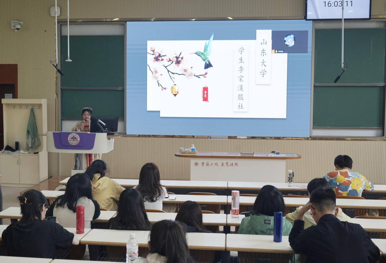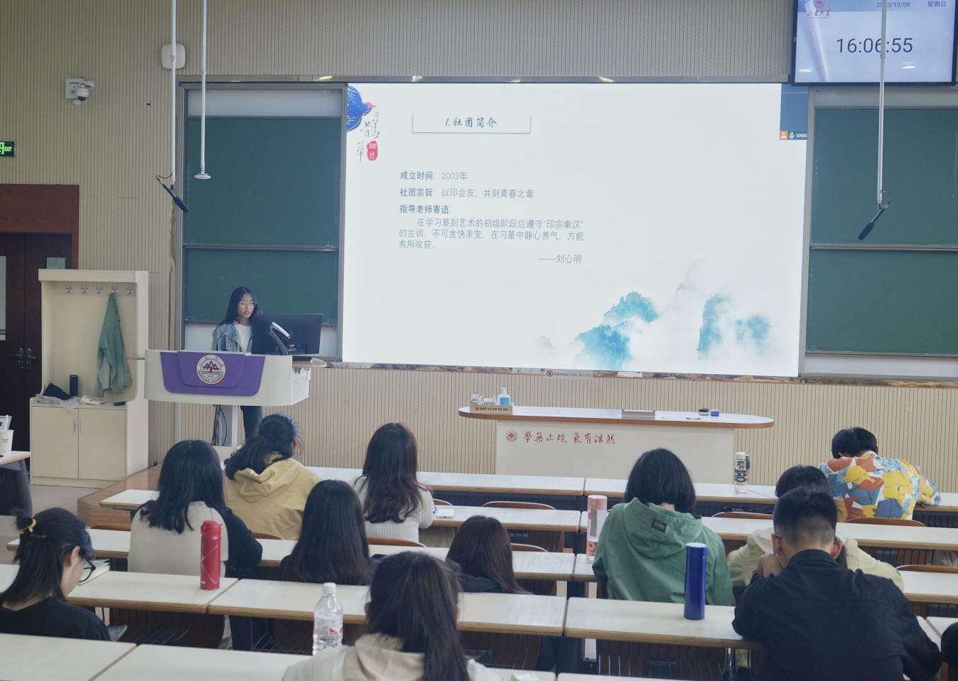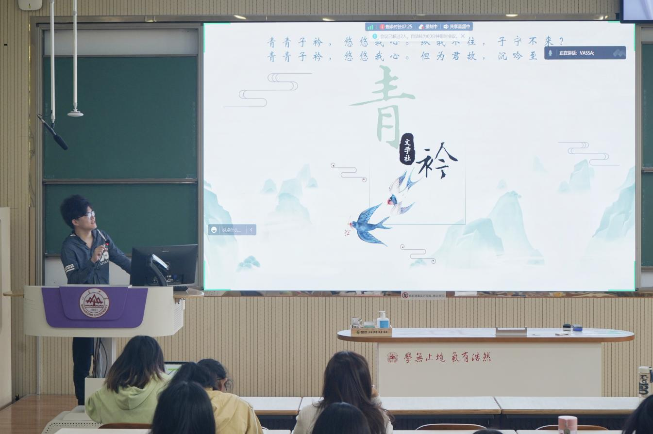 青衿文学社回溯社团历史、展望未来发展,期盼以文会友,招纳新面孔、碰撞新思想、创造新篇章,进而为文学艺术思想的探讨与交流注入新鲜生气。季棠汉服社围绕汉服文化讲述了社团尚美崇古的独特追求,并盛情邀请同学们共赏华夏服章之美。鹊华印社则秉持“静心养气”的理念,期望与新生们一同在雕刻印章的过程中放慢生活节奏,感悟印刻魅力。