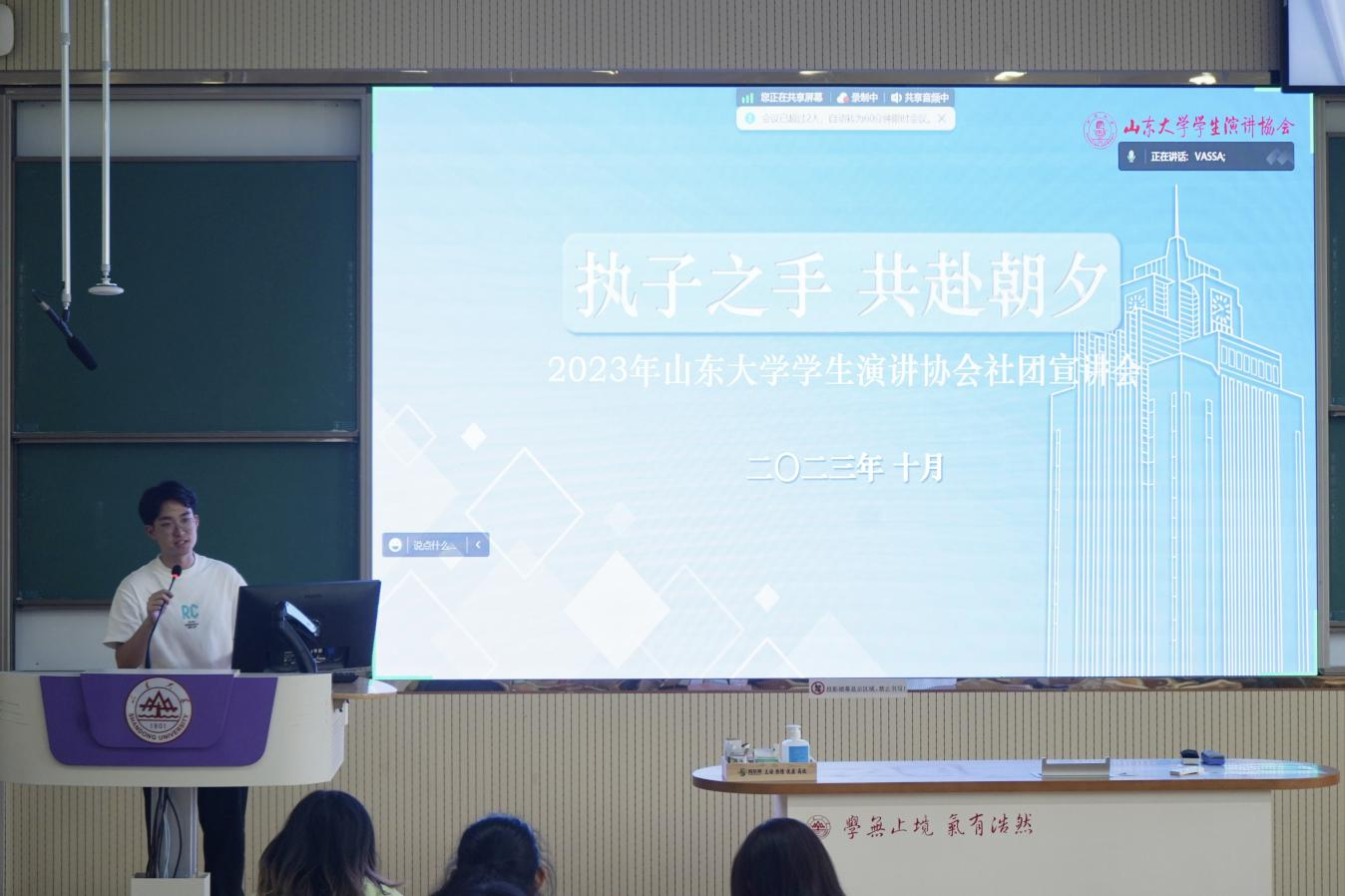 玩家剧社作为公司精品社团,始终坚持以戏感人、以剧化人,是公司探索以社团活动推进美育实践的成果典范。通过回顾社团往年的精彩演出,负责人带领同学们在感受戏剧魅力的同时增进了对社团的基本了解。接着,负责人介绍了社团的内部分工,并借“一半是玩,一半是家”口号表达了邂逅同好的祝愿期盼。演讲协会聚焦社团活动中的高光时刻,用精彩瞬间的相片剪影展现社团成员口吐锦绣、舌灿莲花的才气与“宁鸣而死,不默而生”的意气,以期吸引志同道合的伙伴共同感受欣赏演讲的艺术。