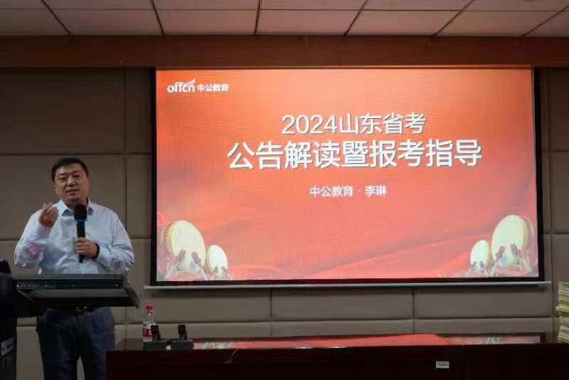 随后,李琳围绕2024年公考公告五大变化、选岗六大原则、考试内容七大变革三个方面展开具体讲解。他指出,近年来,公考进一步强化分级分类与突出政治标准,考察趋于全面系统细致,这将使同学们的备考压力大幅上升。他强调,随着考试内容与招录计划的调整变化,今年山东省考竞争将会更加激烈,但同时也会对应届生更加友好。他还鼓励有志于参加公考的同学们抓住机遇、顶住压力,充分利用自身优势报考基层岗位,进而厘清生涯规划、实现就业目标。