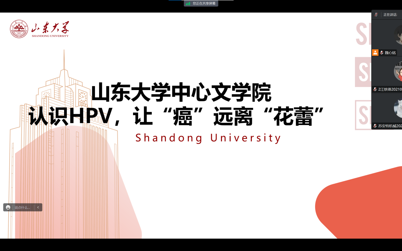 活动前期,团队精心策划、认真筹备宣讲事宜,通过发放调查问卷、查阅相关资料,深入了解群众对HPV健康知识的掌握情况,并据此有效调整宣讲内容,增强了宣讲活动的针对性与实效性。为扩大宣讲受众覆盖范围、提升宣讲活动的社会影响力,团队利用腾讯会议平台进行线上宣讲,并针对性邀请宣讲听众,力求最大程度实现本次宣讲活动的健康教育效果。
