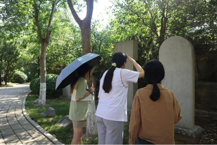 实地调研中,调研团按“由近及古”的顺序对碑刻作品进行考察。通过对比、归纳园内不同时期碑刻作品的造型特点、字迹风格,成员们梳理出碑刻文化源远流长、纵横多元的发展脉络,深化了对中华优秀传统文化的理解力、认同感与敬畏心。此外,针对碑刻磨损缺漏、字迹模糊的问题,调研团成员大量查阅相关文献资料,以期丰富背景知识,为碑刻内容的推测与识读提供文献佐证。
