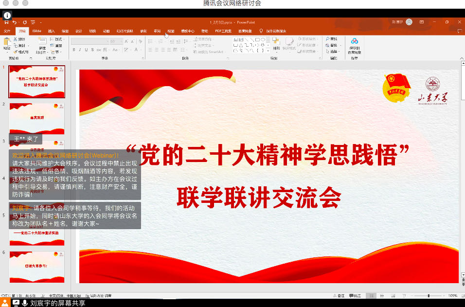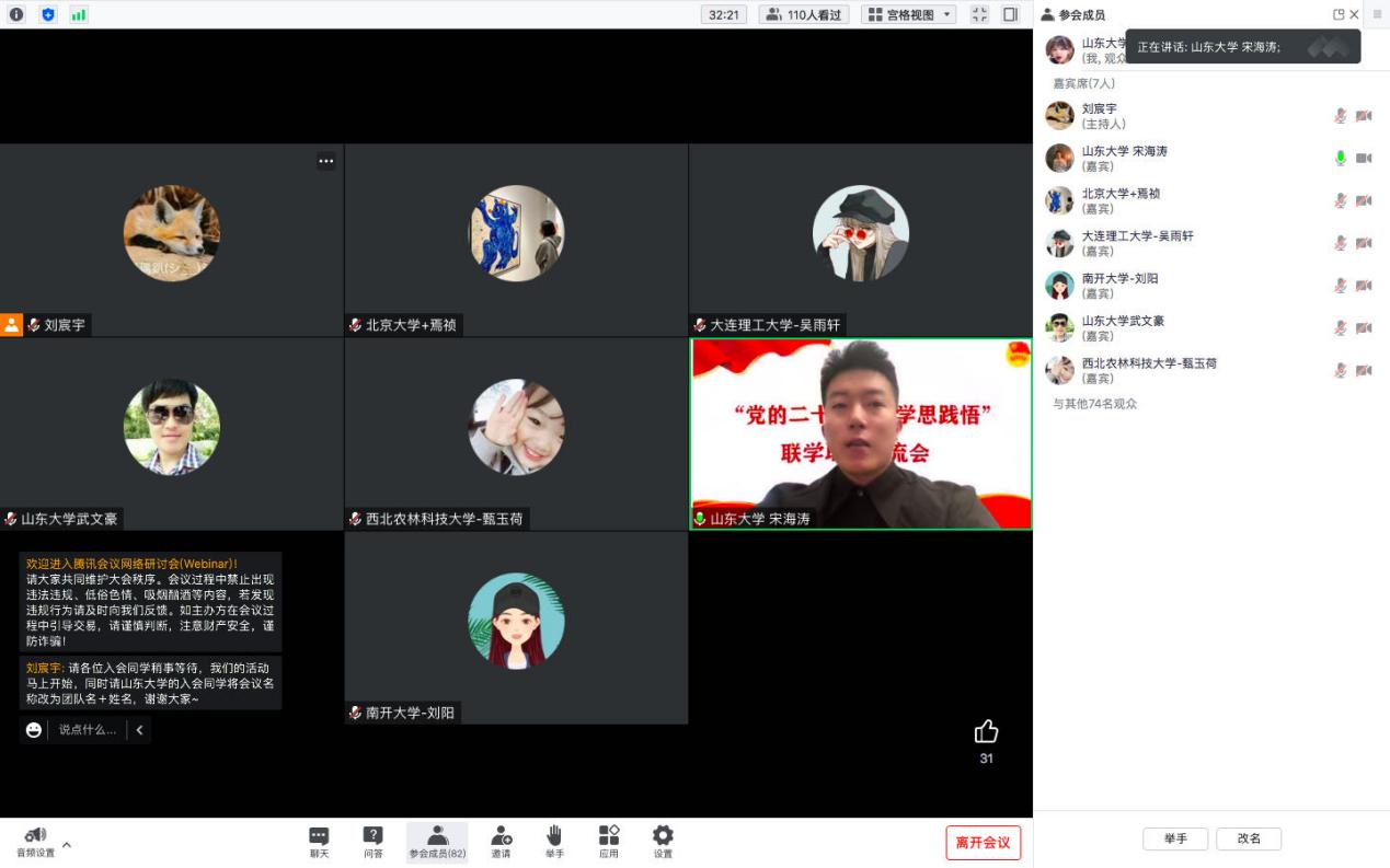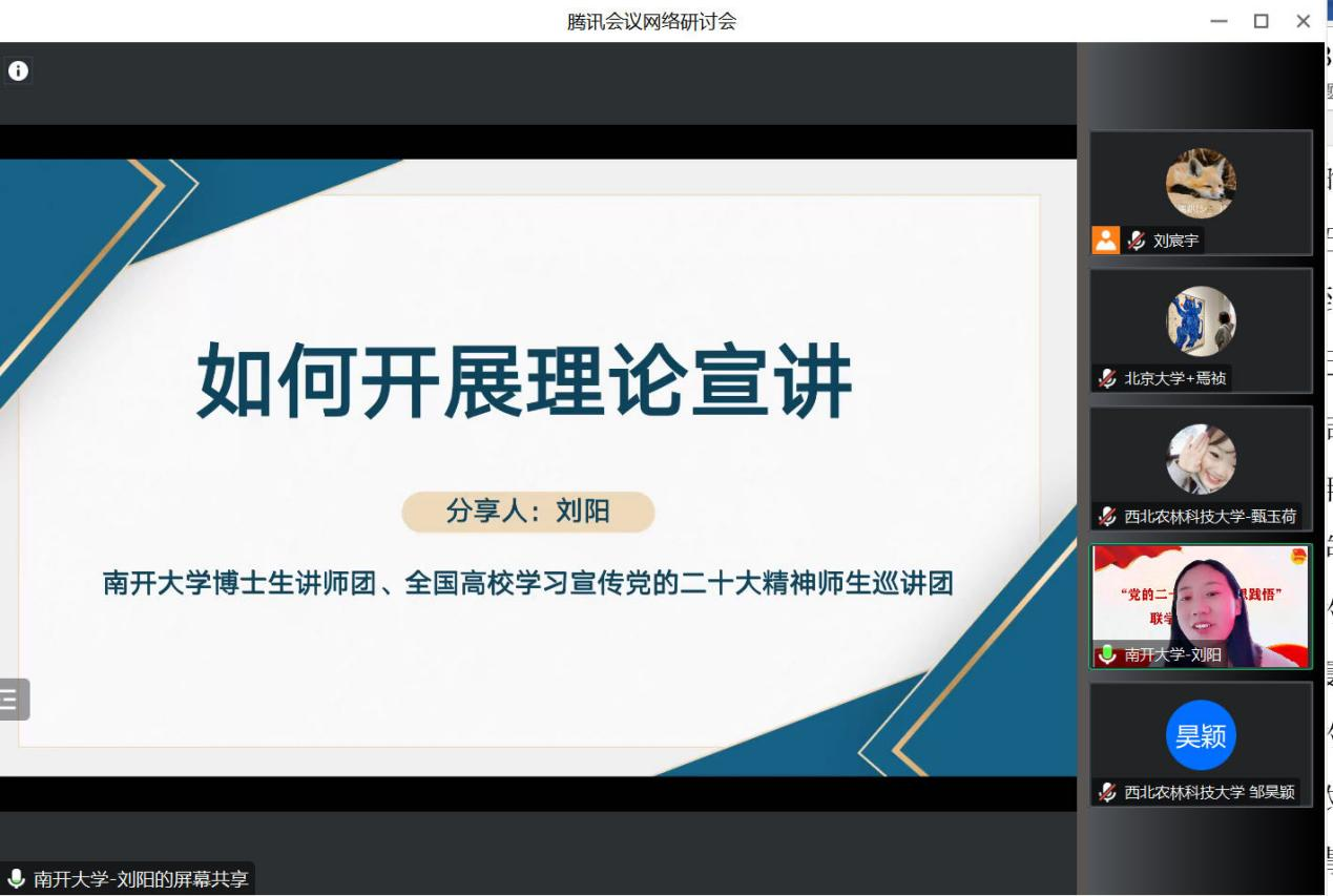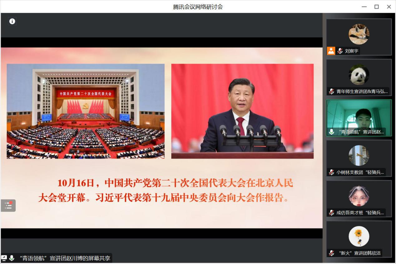 为深入学习贯彻党的二十大精神,推动理论学习入脑入心入行,更好发挥高校员工宣讲团在理论学习教育中的作用,2月3日,公司联合共青团sunbet官方网站委员会、马克思主义公司、历史文化公司、外国语公司举办“党的二十大精神学思践悟”全国高校青年宣讲团联学联讲活动,来自北京大学、南开大学、西北农林科技大学、大连理工大学、大连海事大学等高校的优秀青年参与其中公司“青语领航”党的二十大精神宣讲团受邀参会并作示范宣讲。