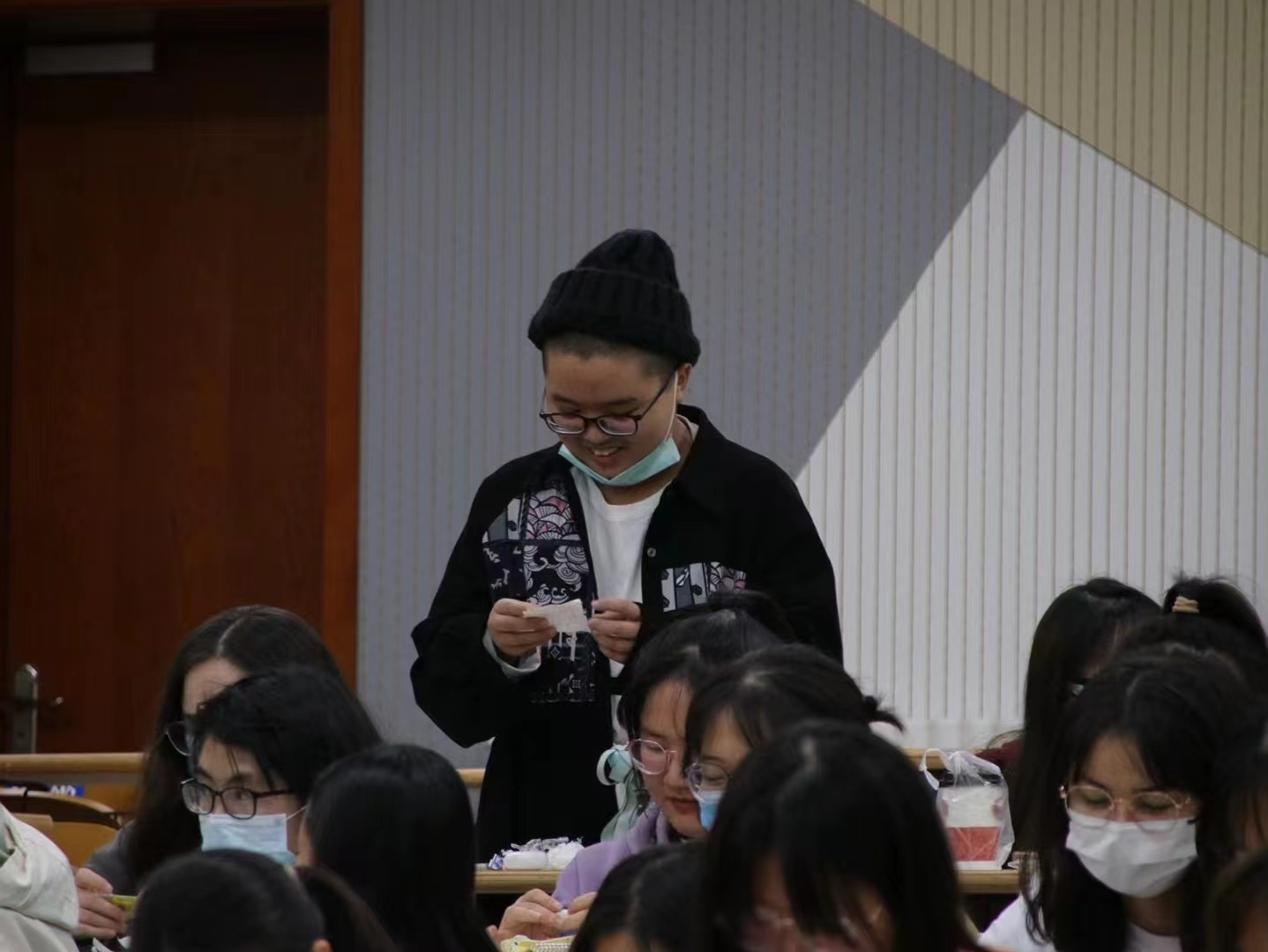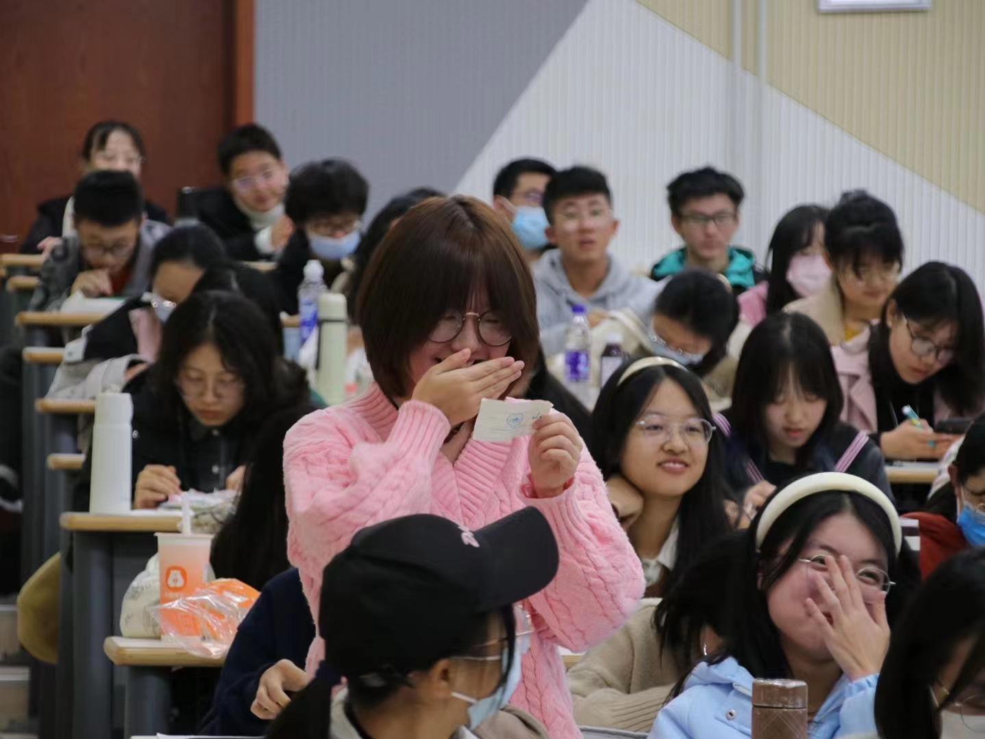 讲座还设计了“糖果轰炸游戏”环节,即同学们在漂亮的糖纸上写下赞美的话并送给想要赞美的人,随后大家互相交流自己收到的“糖果”。通过互赠“糖果”,同学们发现并肯定了同伴的优点,同时也发现了自身的闪光点,在热烈欢乐的氛围中,同学们拉近了彼此的距离,收获了自我价值感。