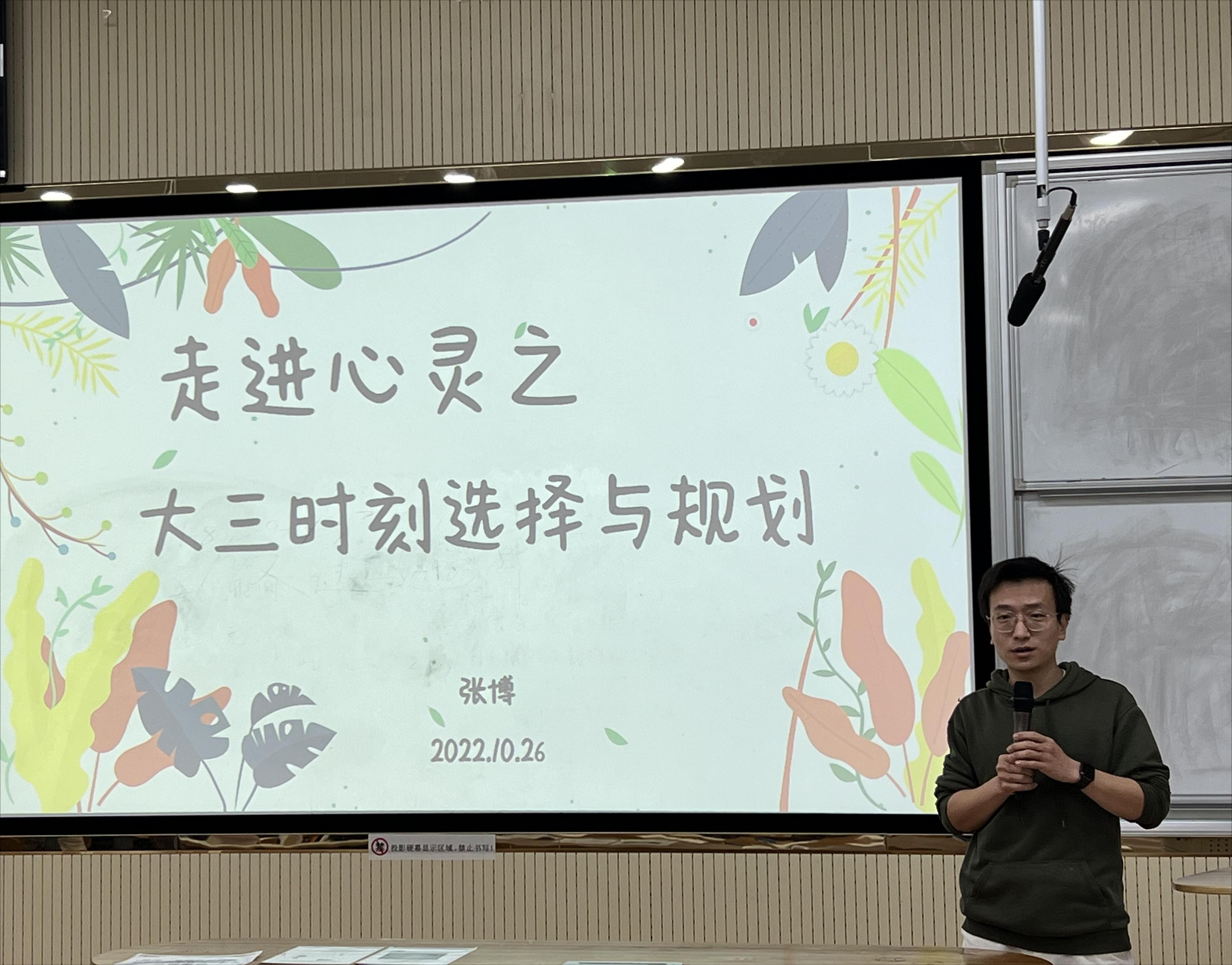 讲座伊始,张博从同学们学习生活中的压力谈起,与同学们交流了压力管理的方法,进而指出同学们要培养生涯规划意识,在学习、实践、就业等方面降低盲目性与被动性,提高自身综合能力。