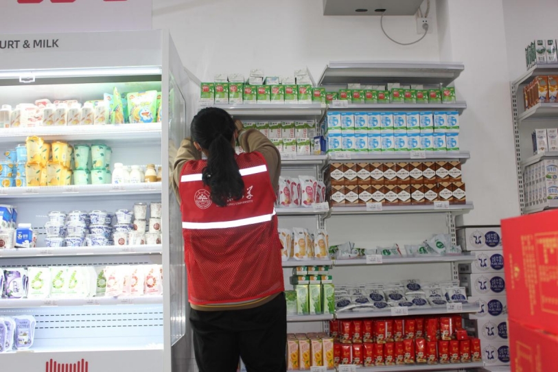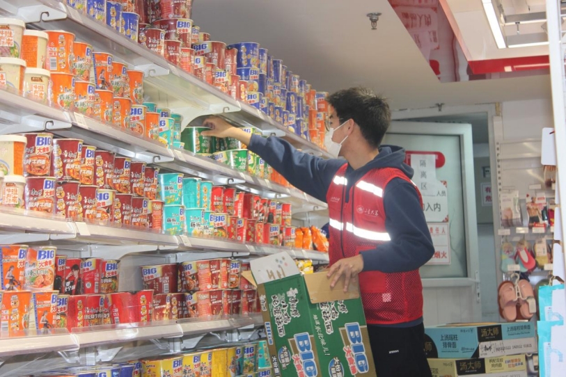 在超市的每个区域,都能看到公司志愿者们勤恳工作的背影。他们穿行于货架之间,测温枪“滴滴”的声响和笔尖掠过纸张的“沙沙”声,是志愿精神最有力的证明。志愿者们高涨的工作热情和良好的精神风貌,不仅得到了超市员工和师生的认可,也为在校师生的生活保障和公司的疫情防控工作奉贡献了一份公司学子的力量。