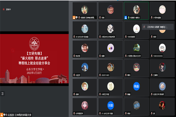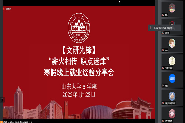 为引导研究生同学充分了解当前就业形势,合理规划职业生涯,sunbet研究生会于1月22日上午举办了“薪火相传,职点迷津”研究生寒假线上就业经验分享会,特邀sunbet2018级优秀硕士毕业生李彤和刘若凡向同学们分享就业经验。本次活动由研究生会实践部主办,实践部干事褚晓文主持,百余名研究生、本科生参与。