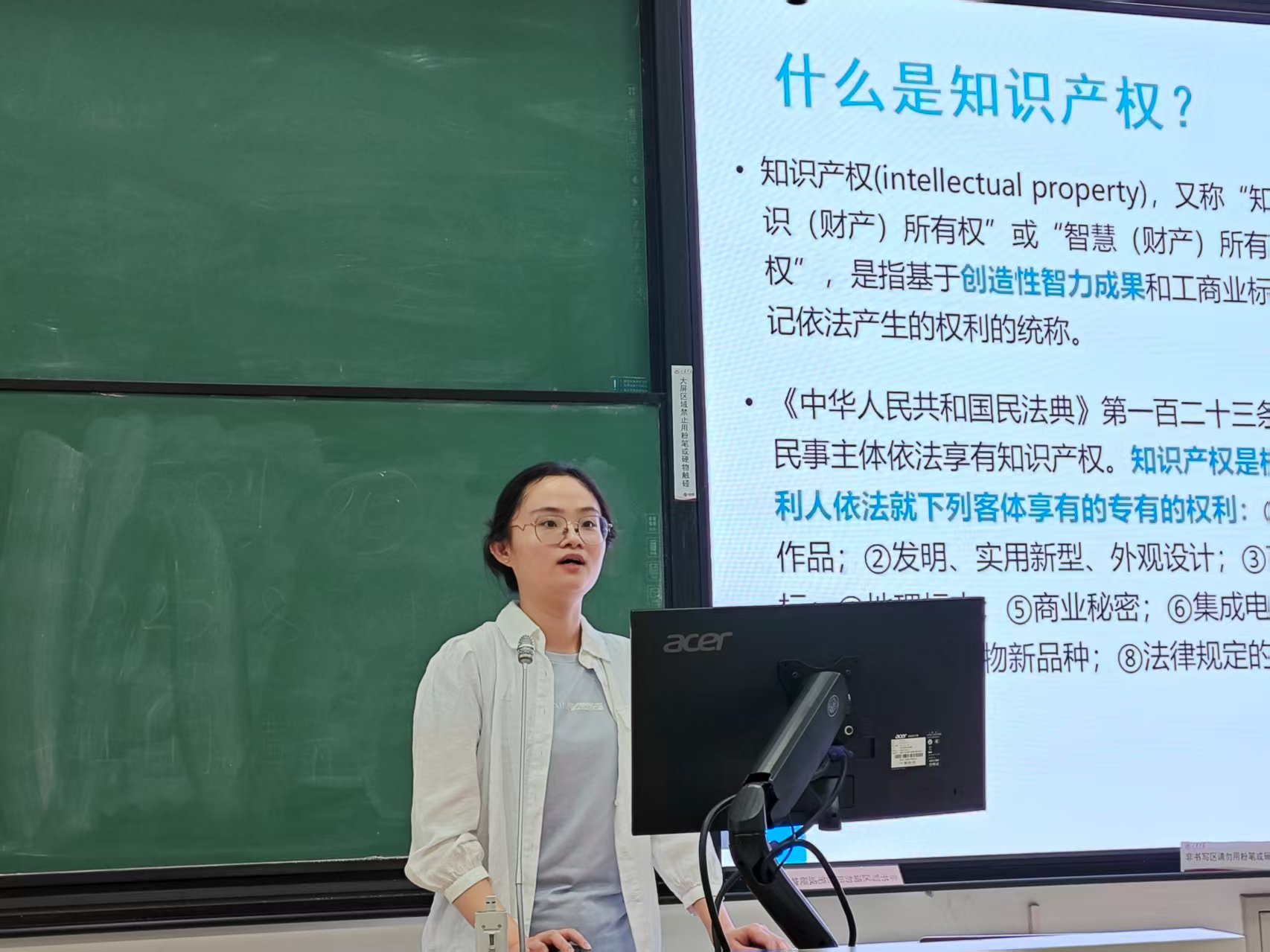接着,万益嘉围绕知识产权主题展开讲述。她从知识产权的基本概念、分类及权利边界入手,介绍了其在科研创新与成果保护中的重要意义,并向同学们展示sunbet官方网站知识产权信息服务中心的主要职能,包括信息收集与分析、专题培训、科研项目咨询及成果转化服务等。同时,她重点推荐“专利信息检索与分析”课程和知识产权精英训练营,鼓励同学们积极参与实践项目,提升知识产权意识与应用能力。