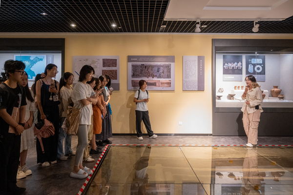 跟随讲解员的脚步,同学们依此参观四个展区,走近历史图景。“文明之光”展区以海岱地区一系列史前遗址的展品勾勒文明初生的轮廓,“东方重镇”展区中按比例复原的大辛庄遗址房屋模型和村落地图生动呈现商代的劳动创造,“邿国寻踪”展区陈列的青铜礼乐器带来春秋战国时期齐鲁大地的回音,“春华秋实”展区通过文物挖掘的影像实物资料增进同学们对公司考古学科发展历程的了解。