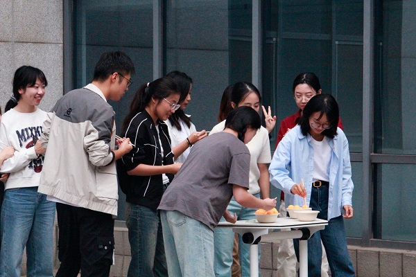 随后的游戏环节将见面会推向了高潮。“妙语连珠”考验了大家的语法实力和反应速度。各部门派出4名成员组成小队,依次根据主持人随机抽取的词语在8秒内连词成句。经过两轮激烈角逐,同学们的语言表达能力和思维敏捷性得到充分锻炼。在“‘筷’运乒乓”中,同学们同心协力、身心一体,接力使用筷子将乒乓球运送至规定位置,现场燃爆青春的活力。